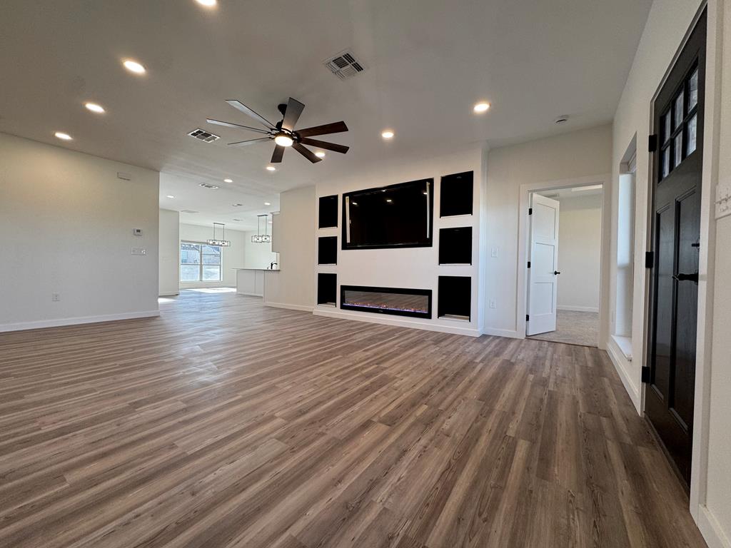 Modern New Build – This sleek 4-bedroom, 2-bathroom features an open floor plan filled with natural light and a modern kitchen in a prime location near restaurants, shopping and more! The custom-built entertainment center with a high-end electric fireplace adds style and warmth to the open living space. The spacious backyard has been landscaped with new grass, offers stunning views of the San Angelo skyline—perfect for relaxing or entertaining. Start making memories in this stylish, nearly finished home! Contact us today to learn more.