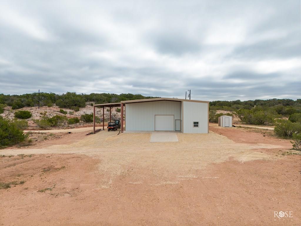 This is the perfect opportunity to own 175 acres just minutes away from San Angelo, Miles or Bronte Tx. The Barn dominium on the property was constructed in 2023 with a 715 sq ft 2 bed 1.5 bath living area, 40'X35' spray foam insulated shop and 20'x40' covered awning. There is a all weather road from the pavement to the Barndo that sits on a elevated plateau with endless views looking over mule creek. Elevation changes with good brush cover provide great hunting and the property also comes with a dirt tank/lake stocked with channel catfish. Future home site has been cleared and with underground water and electric ready to go!