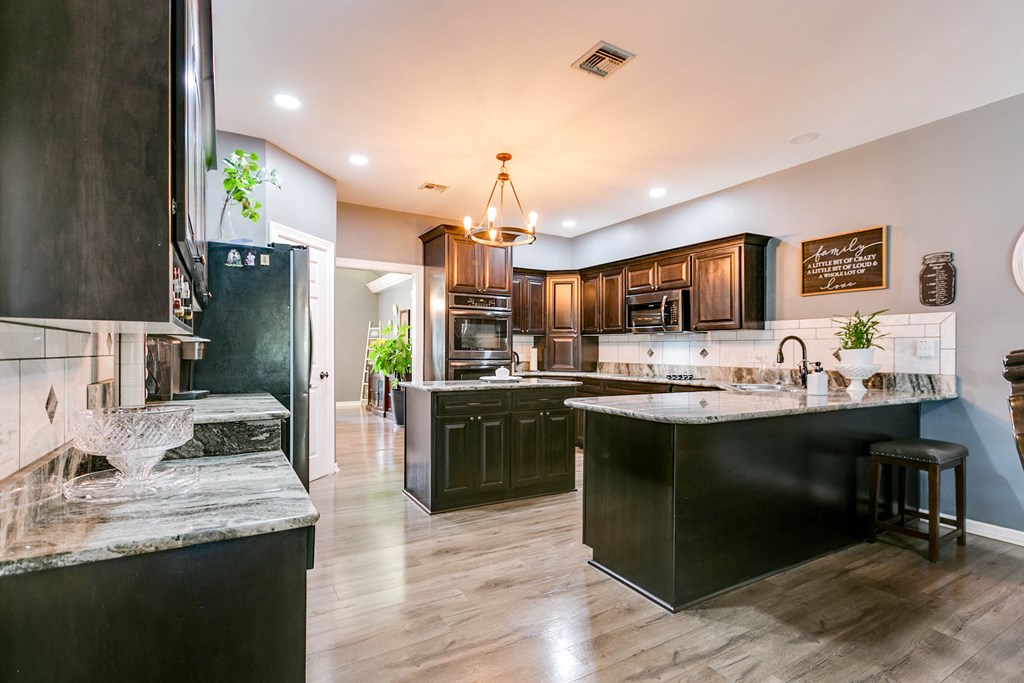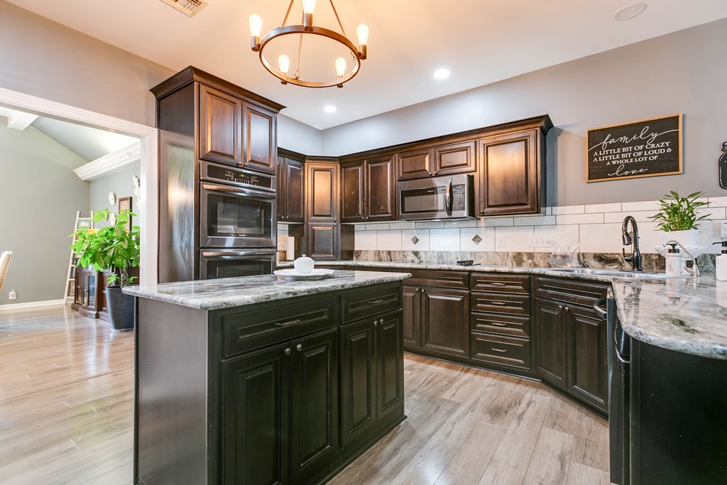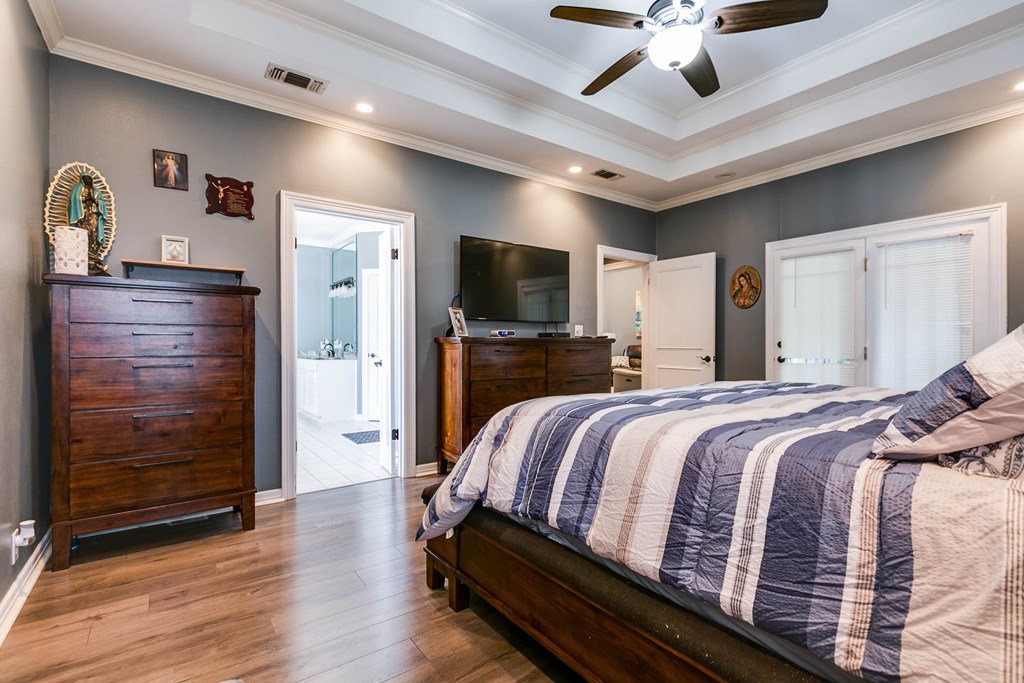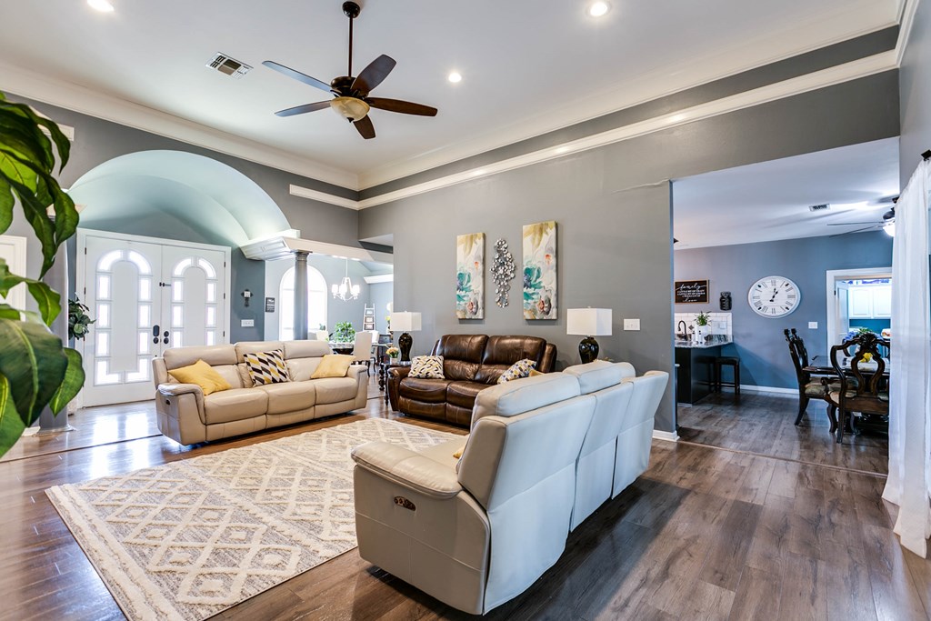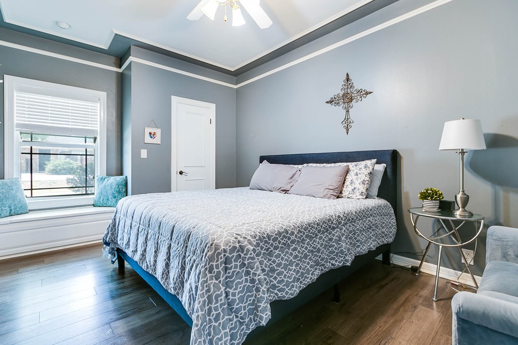 $10,000 Towards Buyer Closing Costs! Discover this timeless, beautifully updated 4-bedroom, 3-bath Estate in the coveted Upper Bluffs Community. The expansive living room boasts a grand fireplace, soaring ceilings, new laminate flooring & hand crafted crown molding. Pass the elegant dining room to find a gourmet kitchen w/ granite countertops, double ovens, pantry & a secondary dining area. The primary suite features a luxury updated walk-in shower, garden tub, split vanities & 2 oversized closets. Split floor plan allows for guest bed & bath privacy while a convenient jack-and-jill bathroom supports 2 other bedrooms. Enjoy Texas sunsets from the versatile west-facing green room or relax in the beautifully landscaped yard under one the pergolas while the man of the house tinkers in the custom detached workshop or newly built carport. The garage, thoughtfully converted into a game room can easily be reverted to a traditional garage if needed, offering flexibility to suit your lifestyle.
