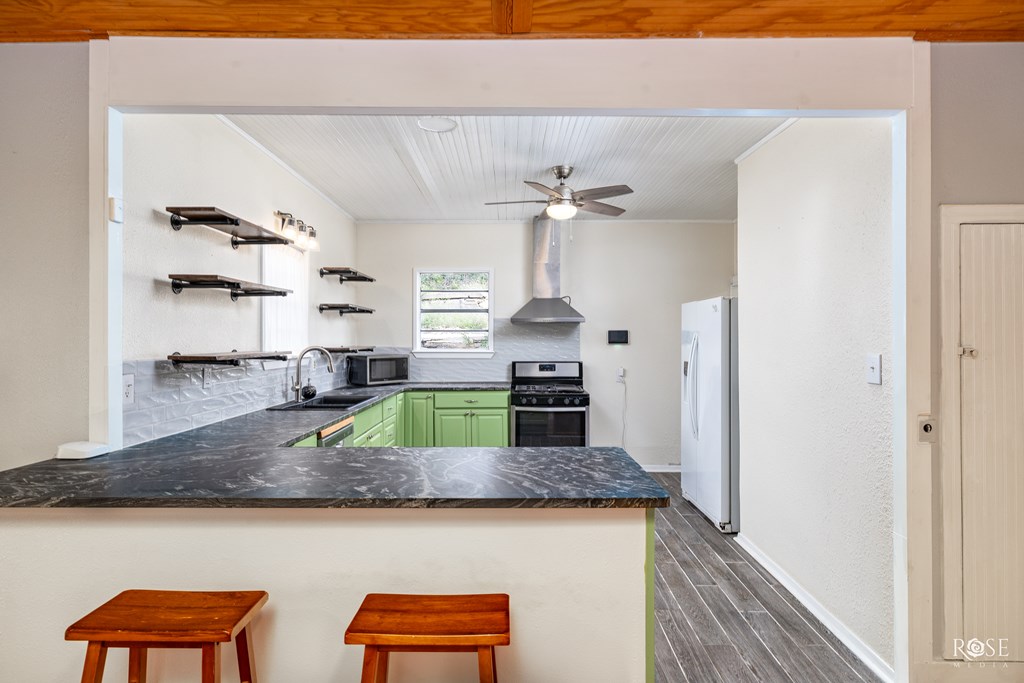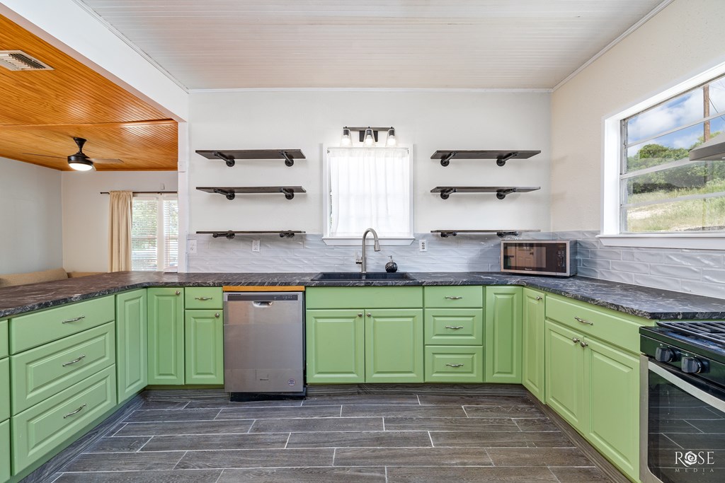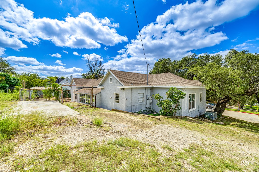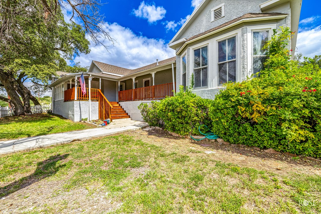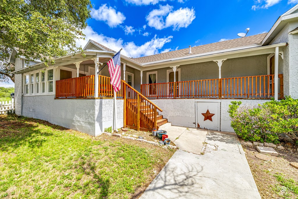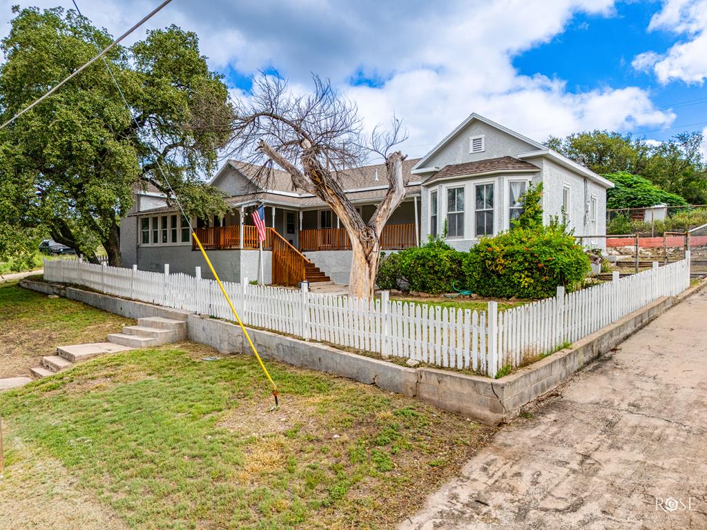 Own a piece of Sonora's history with this charming 4-bedroom, 3-bath stucco home, located on a large lot just behind the historic Sutton County Courthouse. Over 100 years old and lovingly maintained, this home boasts original hardwood floors, 9' ceilings with beaded wood details, and modern comforts like central AC/CH. All three bathrooms, the kitchen and the original wood floors have had recent renovations. A sunroom with full bath makes the perfect home office, game room or could easily be a 4th bedroom. The spacious exterior features mature live oak trees, a wood picket fence in the front, and a chain-link fence in the back. Relax in the porch swing of the large covered front porch while enjoying views of downtown Sonora or take advantage of your backyard's direct access to Eaton Hill Nature Center. This unique property offers the perfect blend of historic charm and natural beauty, all within walking distance of town. Shown by appointment only