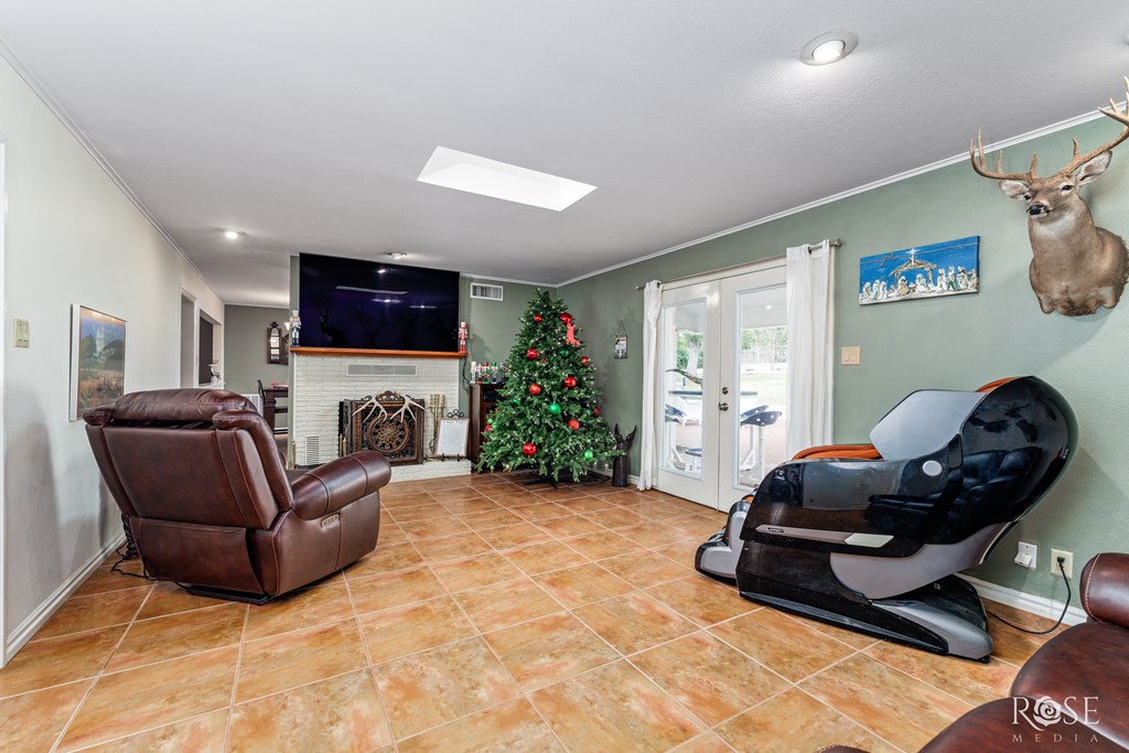 Discover timeless charm in this beautiful brick home, tucked away in a prestigious, tree-lined neighborhood. The landscaped yard creates a serene setting, while the all-electric design ensures modern efficiency. A spacious kitchen with stained concrete countertops flows into a breakfast area and formal dining room—perfect for hosting gatherings. Cozy up in the den with a wood-burning fireplace or retreat to one of the 3 bedrooms, complemented by 2.5 baths, a cedar closet, and built-ins. Tile, wood laminate, and plush carpet add style and comfort throughout. A utility sink in the laundry room and a large brick patio overlooking the backyard, and a two car garage offer practicality and convenience. This well kept home is ready for you and your family to move in and enjoy.