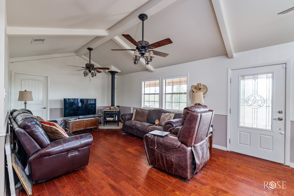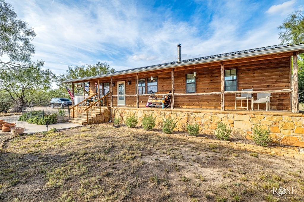 Time to escape to quiet country living. The charming home sits on a little over 5 acres located in Dove Creek and is only about 15 minutes from San Angelo. After a long busy day you can enjoy the wildlife and tranquility from the front porch that runs the full length of the house or the back covered deck. Other features include a basement, 3000 gallon rainwater storage tank with an extra 1000 gallon tank next to it, a well that pumps into a 600 gallon stock tank, 24x20 metal shop, carport, garage, covered rv parking, greenhouse, extra storage buildings (one with walk in cooler for deer processing/storage), chicken coop and is fully fenced.