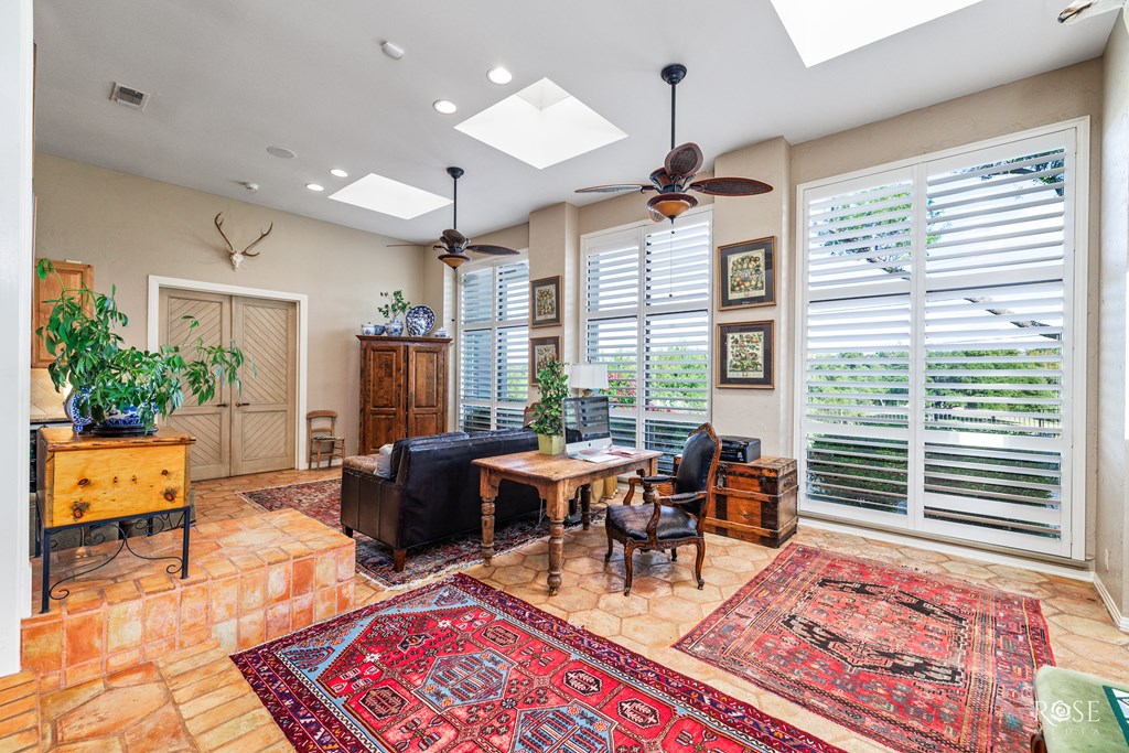 Prestigious Santa Rita Home – Luxury, Location, and Charm Located in the heart of the highly sought-after Santa Rita neighborhood, this upscale 4-bedroom, 4-bath home offers the perfect blend of elegance and comfort. Featuring two expansive master suites, each with private sitting areas, this home is ideal for multi-generational living or hosting guests in style. Step into the gourmet kitchen, thoughtfully designed to overlook two spacious living areas, creating a seamless flow for entertaining and everyday living. Soaring 12-foot ceilings throughout the home add a grand, open feel. Enjoy serene, shaded outdoor living in the beautifully landscaped backyard, which offers stunning views of Santa Rita Park. Just steps away, you'll find a lighted tennis and pickleball court, perfect for an active lifestyle. Unwind in the evenings on the oversized back patio, perfect for gatherings or quiet relaxation. This home truly has it all—location, luxury, and timeless charm.