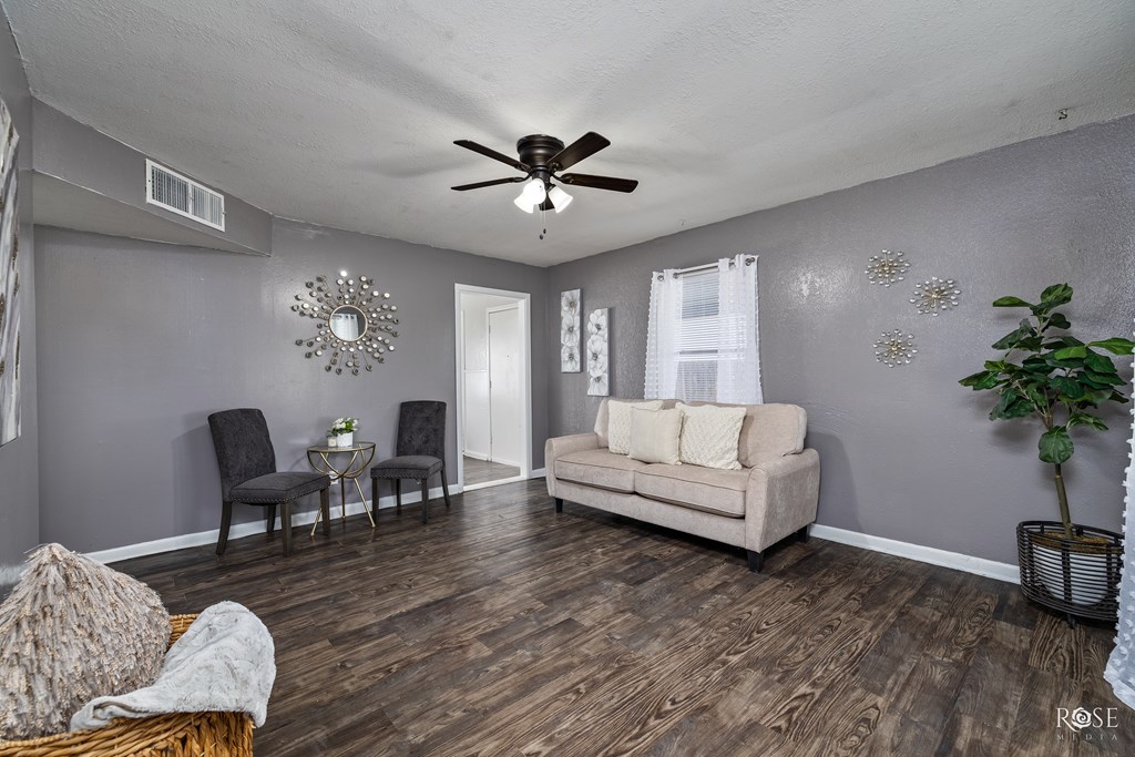 Welcome to this charming and cute 2-bedroom, 1-bath home that truly shines with its great curb appeal! A lovely mature tree in the front yard adds character and shade, complementing the home's inviting exterior. Step inside to find stunning vinyl flooring throughout, giving the home a modern yet cozy feel. The kitchen is well-equipped with plenty of cabinets for ample storage, perfect for keeping everything organized. Off the kitchen, you'll love the convenience of the laundry and storage room, providing extra space for all your needs. The large backyard is ideal for outdoor entertaining, complete with a shed for additional storage and alley access. This home is the perfect blend of comfort and functionality!
