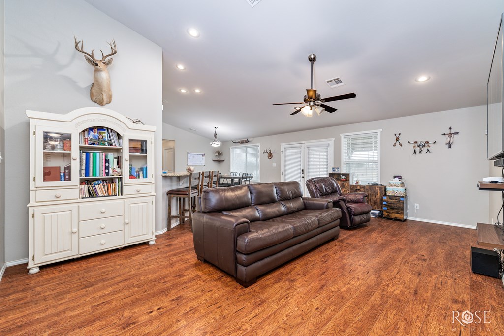 Nestled on 1.030 acres in Wall ISD, this stunning home features an open floor plan that welcomes you with warmth and style. It offers three generously-sized bedrooms, each with large closets, making it completely move-in ready. The open layout seamlessly connects the living room, kitchen, and breakfast area, perfect for entertaining or watching the kids. The living space boasts vaulted ceilings and elegant crown molding, while the kitchen is beautifully appointed with granite countertops, abundant cabinet space, stainless steel appliances, and a spacious walk-in pantry. There is an additional room that can be easily adapted to serve as a formal dining room, den, office, or kids' playroom. A large laundry room provides practicality with lockers and coat hooks, while the garage includes built-ins for extra storage. The outdoor space is abundant, featuring a covered patio and a large fire pit ideal for gatherings and relaxation.