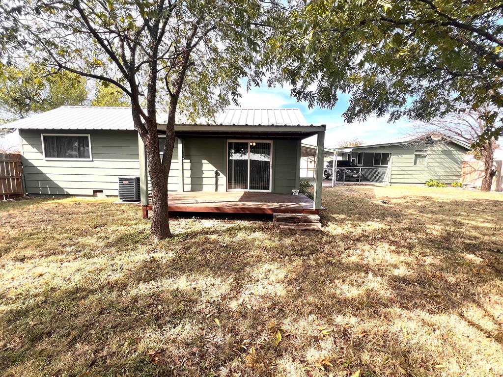 Welcome to this charming 3-bedroom, 2-bathroom home that spans 1,800 square feet of thoughtfully designed living space. Recently remodeled throughout, this corner lot property showcases beautiful hardwood floors and a spacious kitchen perfect for culinary adventures. The primary bedroom features a private deck, offering a peaceful retreat for morning coffee or evening relaxation. Practical amenities include a water well for yard maintenance and a generous storage building for all your organizational needs. Located within walking distance of downtown Eden, you'll enjoy easy access to local conveniences including the bank, library, post office, eateries, and shopping. Take a short ride on your golf cart to the golf course nearby. The newly improved schools are just blocks away. The home's blend of modern updates and convenient location makes it an ideal choice for comfortable Texas living.