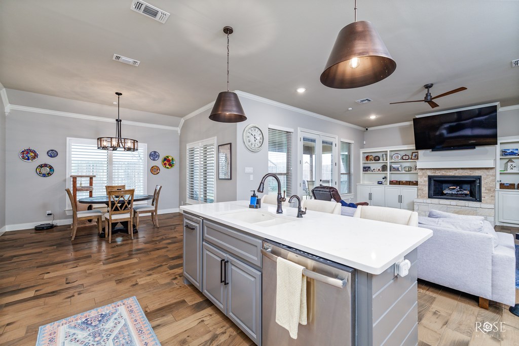 Beautiful Bentwood Home with all of the bells and whistles! Four bedroom three bath with two dining areas and large open concept kitchen living and dining area. Xeriscaped front yard frees up your valuable time for enjoying proximity to Bentwood Golf Course and Club House actiities. Built in book cases flank the limestone firepace. Easy care and elegant, the wood grain tile floors throughout are just one of the appealin finishes in this modern home. You'll love the gourmet kitchen with gas cooktop, large island, and walk in pantry. Everything in this David Currie built home is designed to provide an easy, enjoyable, elegant lifestyle. Many smart features give you control at our fingertips. The 3 car garage is Electric Vehicle ready with plugs installed and ready for your Tesla. Step into the mudroom and find the perfect spot for leaving shoes and jackets. The large covered back patio extends your living space and gives year round enjoyment. This home has it all! Call today