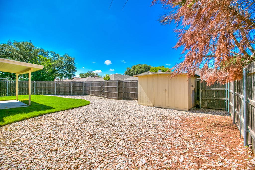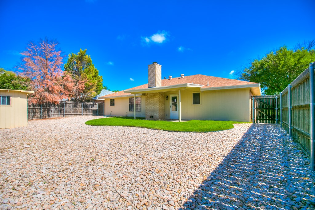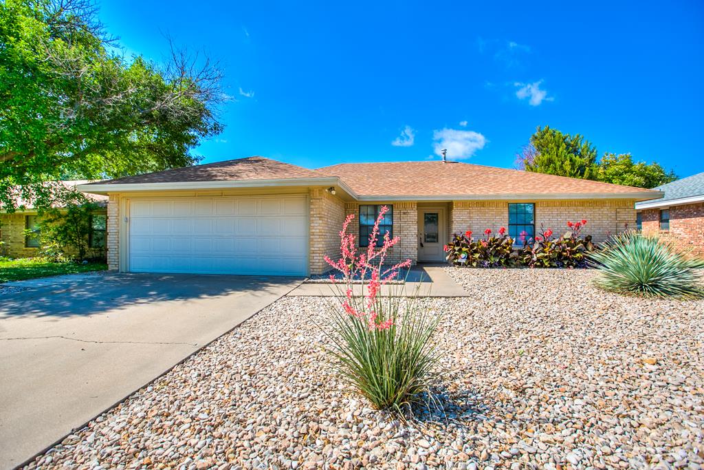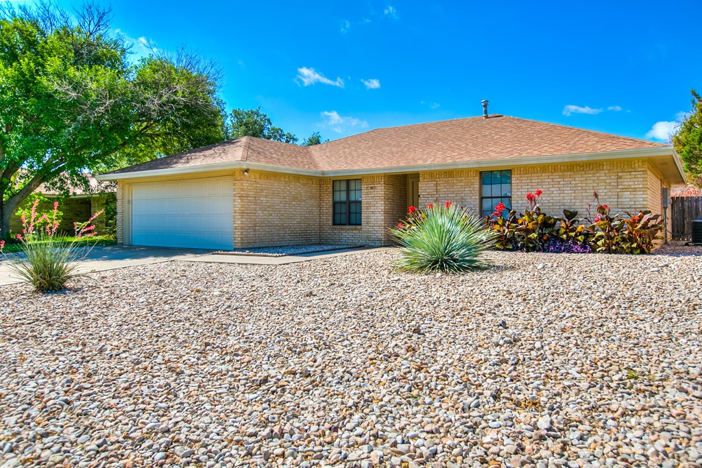 Welcome to this inviting 3-bedroom, 2-bathroom home offering 1541 square feet of comfortable living space in a Enjoy the convenience of being close to everything that matters! Just minutes from Walmart Supercenter and Chick-fil-A (because who doesn't love those waffle fries?), and a short drive to Goodfellow Air Force Base. The home boasts numerous updates throughout, making it move-in ready. Outside, you'll appreciate the low-maintenance zero-scaping landscape design that looks great year-round without the weekend warrior lawn duties. Need extra space? The bonus storage building provides plenty of room for your tools, holiday decorations, or that exercise equipment you're definitely going to use someday. This thoughtfully designed property combines practical features with a great neighborhood location – the perfect place to put down roots in San Angelo! This versatile property features a study/office that could easily transform into a fourth bedroom,