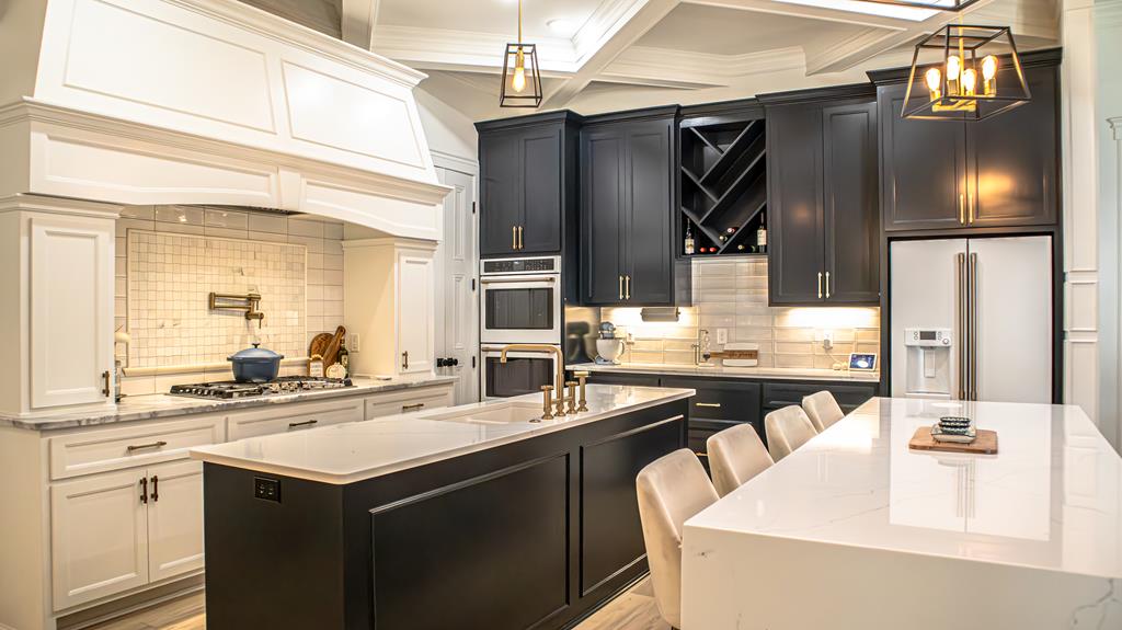Step into this meticulously designed, custom-built home where no detail was overlooked. This stunning residence features a flawless layout perfect for both everyday living & entertaining. The living room boasts elegant Crawford ceilings, seamlessly guiding you to the heart of the home: the kitchen. Equipped w/a gas range, warming drawer, GE Cafe double oven, a coffee bar w/glass cleaner, & a commercial-grade RO spigot, this chef's kitchen is a culinary dream. The walk-in pantry is generously outfitted w/counter & cabinet space, ensuring you'll never lose a thing. Expansive sliding doors in the living room provide picturesque views of the covered patio, blending indoor & outdoor living with ease. 4 of the 5 beds are en suites, offering every occupant a private oasis. The primary suite is a true retreat, complete with a spa-like bathroom & a spacious closet that will delight any shopping enthusiast. Even your pets are pampered, w/ their own dedicated bath! 3 car garage w boat/RV space.
