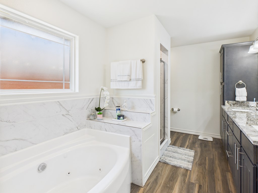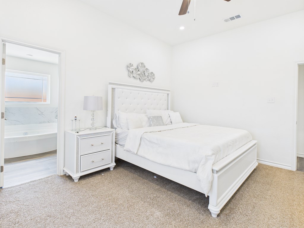 Welcome to your next home in the highly sought-after Lakeshore Estates community! Step inside to a wide, inviting entryway that flows seamlessly into the open-concept living and kitchen area—perfect for everyday living or entertaining. Soaring 10' ceilings fill the space with natural light, creating a bright and airy feel throughout. The spacious primary suite offers a relaxing retreat, complete with a generous walk-in closet. Down the front hall, you'll find a thoughtfully placed laundry room and three additional bedrooms, each with roomy closets for ample storage. Situated on one of the larger lots in the neighborhood (0.208 acres), the backyard is ideal for entertaining, play, or even your dream pool. With a clean, modern aesthetic, this home is move-in ready and just waiting for your personal touch!