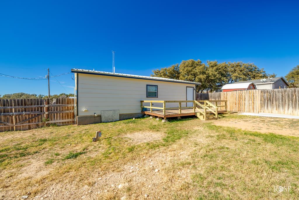 Located in an area of Christoval that is not only a few blocks from the elementary school but also is an area that is being remodeled and improved house by house. This is one of those homes! Refrigerator included and the cutest pantry! New metal roof, new flooring, paint, front porch, deck off the back door and a sweet large back yard. Raised beds are enclosed to protect your garden, storage building, Fenced in area for pets if needed. Aerobic septic system and privacy fence. All with a price to fit a modest budget. Christoval Texas, known as CTX is a sweet place to live - this home is ready for you. See the video here: https://youtu.be/pVCeKoG8zRU