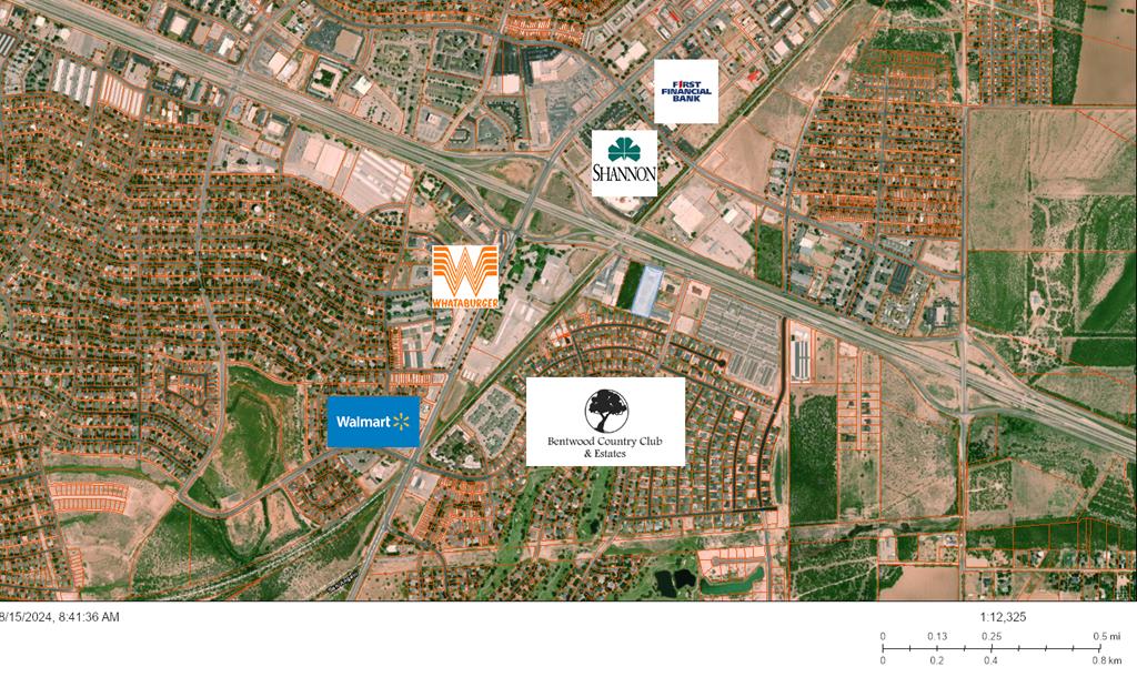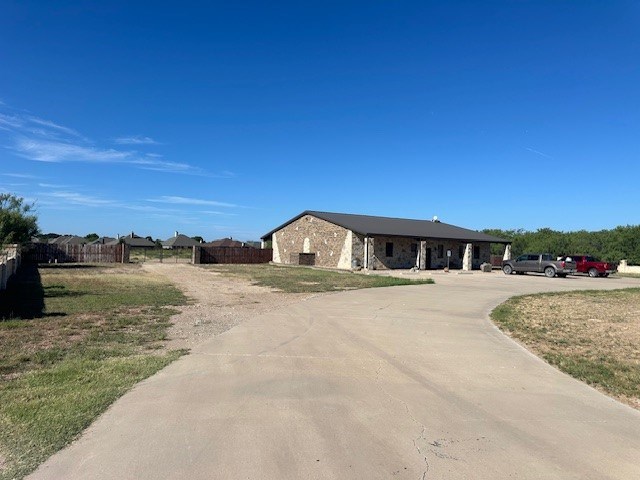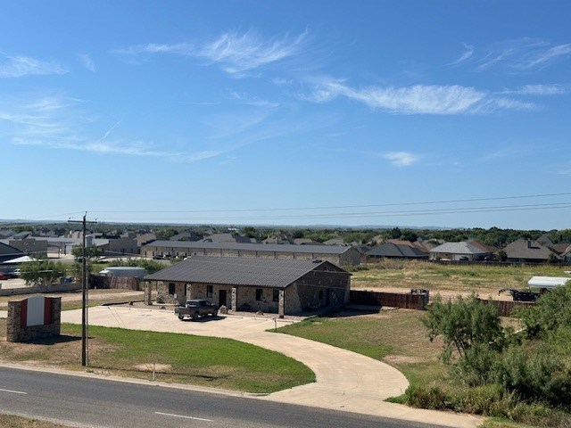 This ideally located property, situated on Loop 306 adjacent to Bentwood Country Club, offers an exceptional opportunity for business growth. Spanning 600 feet in length and 225 feet in width, the property features a prominent circular driveway leading to a parking lot with eight spaces. At the forefront of the property, you'll find a 3,300 sq. ft. building. This well-designed space includes a spacious showroom, two offices, a bathroom, and a kitchen area. The showroom is highlighted by a large rock point-of-sale desk along the back wall, providing ample counter space for operations. Behind the showroom, there is a substantial storage and warehouse area equipped with two 9-foot garage-style doors, providing convenient access to the 2.21-acre yard. The yard includes two entrance and exit points secured by a locking gate, enhancing both accessibility and security. With a total of 3.12 acres, this property offers significant potential for expansion and a variety of business ventures