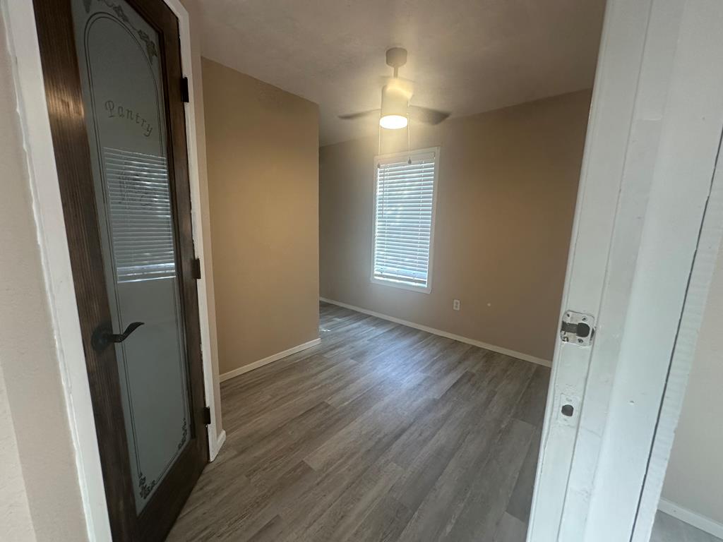 Very cozy 2-bedroom, 2-bath corner lot home. This move-in ready home features a wood burning fireplace in the primary bedroom. You'll love the newly installed wood laminate flooring in the kitchen /dining, utility room, pantry area, and bathroom. The pantry area could also be used as a small office or craft/sewing room. Step outside to enjoy the backyard under the pergola perfect for entertaining. The property also includes a spacious storage building, a small patio area that leads to the garage, and a porch off the primary bedroom with doors offering space for relaxing. For indoor entertaining, you''ll enjoy the gas fireplace in the living room and the additional living area . The stucco, pantry, A/C, roof, and hot water heater have been completed or replaced within the last 5 years. The carpets in bedrooms are only 3 years old and have been thoroughly cleaned. The wood floors in the living areas have been buffed to restore their shine. Don't miss out on this well kept home.