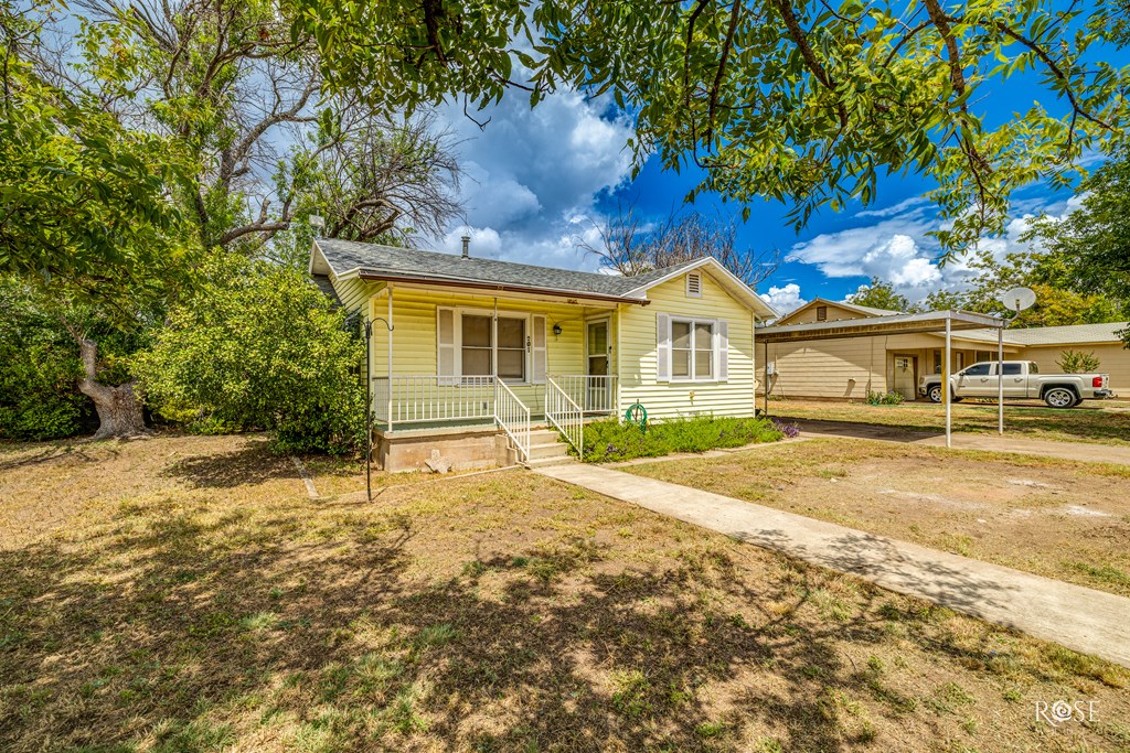 Welcome to 201 E 2nd St, Sonora, TX. Conveniently located on a corner lot near the elementary school, this affordable 3-bedroom, 1-bath home exudes warmth and character. Original hardwood floors run throughout the living areas, adding timeless appeal, while one bedroom features nostalgic knotty pine paneling. The spacious kitchen and dining area open directly to the backyard, perfect for indoor-outdoor living. A generous laundry room doubles as extra storage space, and you'll appreciate the oversized closets throughout. Outside, a concrete block privacy fence surrounds the backyard, offering security and seclusion. Additional highlights include a carport, alley access, and extra lot space located behind the backyard, providing ample room for expansion or outdoor activities. Built on a pier and beam foundation, the home also has a composition shingle roof and a newly installed AC/CH unit, ensuring comfort and peace of mind. Location and affordability all wrapped in one.