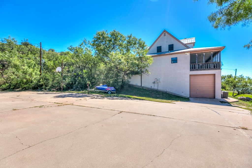 STUNNING VIEWS FROM EVERY ROOM! The main level features an open living area with a spacious living room, dining room, and a chef's kitchen complete with built-in ovens and quartz countertops. A wall of windows leads to a screened balcony wrapped in wood for a cozy cabin feel, overlooking Lake Nasworthy and Twin Buttes with incredible sunsets. Off the kitchen is a pantry and laundry room, while the master suite offers a fireplace, soaking tub, separate shower, and dual walk-in closets. An executive office with custom built-ins and a full guest bath are also on this level. Upstairs, two large bedrooms can be divided into four separate rooms with smart dividers, each with a full bathroom and stunning views. The property includes a second lot, a massive RV garage, and a single-car garage. On the water, the modern dock features composite decking, a metal roof, a undermount wakeboat lift, two PWC lifts, mooring pole, great water depth for easy lake access. *watercraft and furniture included*