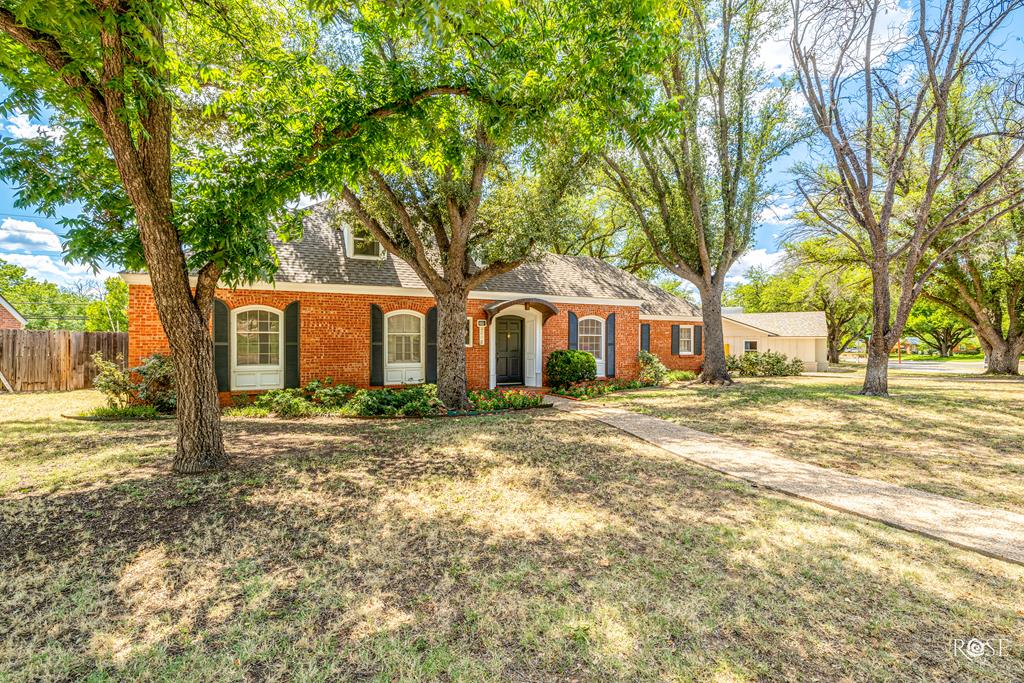 Centrally located in the heart of the San Angelo near schools, parks, restaurants, and shopping this 2,148 sq/ft home with 4 bedrooms and 2 bathrooms definitely has the WOW factor! Driving up to the house you will be overcome with a feeling of elegance and warmth. Once inside it will be obvious that the kitchen is the hub of the house and is surrounded by two living areas and a formal dining room. Entertaining will be a breeze and a delight. You will appreciate the beautiful custom walnut kitchen cabinets too. The master bedroom and one of the other bedrooms is located downstairs. There are two large bedrooms and a bathroom upstairs that offer great separation and privacy from the rest of the house. One of the great features of this house is the outside space. Large mature trees give plenty of shade while allowing the perfect amount of sunlight to filter down. The covered patio with extra storage in the back creates the feeling of an outdoor room that has endless possibilities.