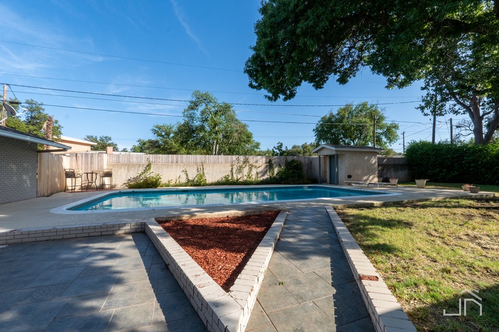 This grand 3/3+ home with a POOL has the perfect layout and space for a multi-generational family. Walk all the kids to school as it is only short walk to Angelo State University, Crockett Elementary & Glenn Junior High. This spacious home has 3 bedrooms, each with its own en suite, plus a half bath. It boasts lush landscaping, 2 large living areas, a cozy gas log fireplace, plantation shutters throughout, a custom dining room & updated chef's kitchen with double oven! The master bath feels like a Grecian spa, with glam space and an extra area for a nursery, workouts, or a reading nook. Also has private patio access to the pool! The 3rd bedroom has a fully accessible bath, with a roll-in shower. This family home has an amazing cool-deck pool for those Texas summers. Winter? This pool is HEATED, with a new gas heater that can provide comfortable all year swimming. The newly replaced robotic pool cleaner, pump, cover, & surface skimmer make maintenance easy!