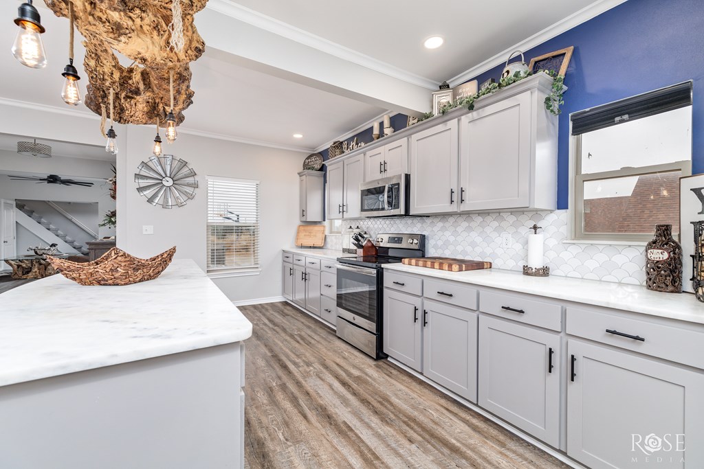 This stunning lakefront 4-bedroom, 2.5-bath offers breathtaking views, modern comfort, and waterfront serenity. Enjoy an open-concept living space with abundant natural light, a gourmet kitchen, and a spacious primary suite. Multiple bedrooms to accommodate entertaining guests, family & friends. The fourth bedroom can function as a study or bonus room. Recent upgrades include a new roof (2025), fresh stucco exterior & paint, and beautiful new landscaping. Relax or entertain on the recently stained upper deck overlooking the water. Detached storage room. Direct lake access via private boat dock that is only a year old. This home is in a prime location, perfect for year-round waterfront living. Schedule your showing today!