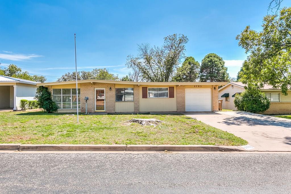 Great location close to Angelo State University, restaurants, and shopping! This cute mid-century style home has updated wood laminate in the living rooms and bedrooms. There is a master ensuite bath for convenience. The living room has wonderful picture windows letting in bright natural light. A second living space would make a great office, playroom, 2nd TV room, or possibly large dining room. Sliding doors lead out onto a spacious covered patio and big open back yard for the kiddos to have great space for running around. A large storage building sits in the backyard for any lawn equipment you might have...there is a sprinkler system, so you will need that lawnmower! This home is awaiting new owners to add their own special touches! Call your real estate agent and take a look soon!