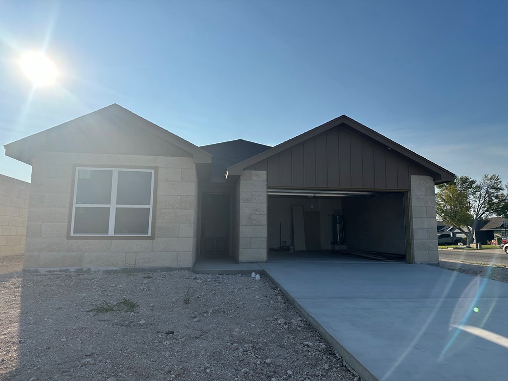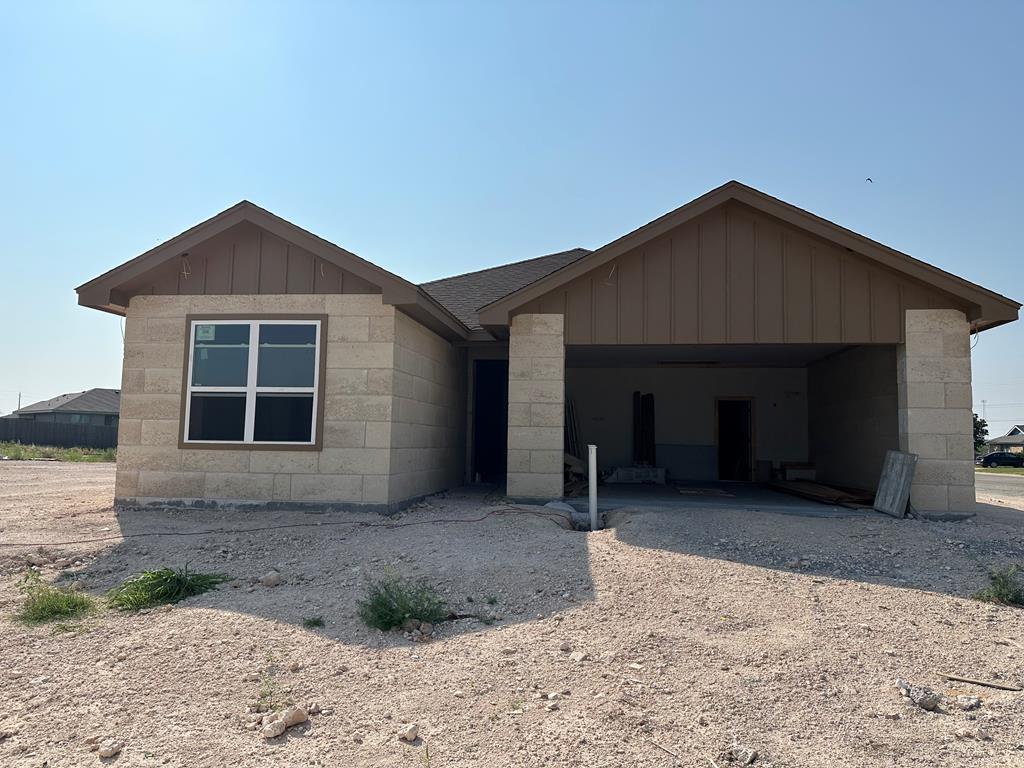 Discover modern living in this newly constructed 3-bedroom, 2.5-bath home. This new and innovative building material has been approved by the city of San Angelo. Experience both aesthetics and energy efficiency with exterior walls crafted from Texas-Australian Rock, a unique man-made limestone product. The interior features traditional Sheetrock, and the split floor plan creates an open living/kitchen/dining space, perfect for entertaining. Enjoy the spacious covered patio and seize the opportunity for a corner lot. Exclusive builder incentives await – make this contemporary gem yours! Home qualifies for ZERO DOWN FINANCING (FHA, VA, Conventional Loans) **subject to terms and buyer qualifications. BUILDER IS OFFERING $4K in CLOSING ASSISTANCE to buyer.
