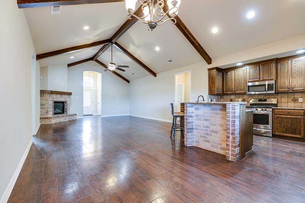 How does living on a rarely driven street in an exclusive neighborhood sound? Perfect, right? This home encompasses beauty, practicality, and space! Cathedral Ceilings with beautiful wood beams and the cozy corner fireplace make this open concept living space the perfect spot for great entertaining. The gourmet kitchen serves as the heart of the home, featuring a large breakfast bar for gathering, granite countertops, gas stove with matching stainless steel appliances, custom cabinetry and pantry. Split bedroom layout gives the perfect amount of privacy for your built in study nook. The primary ensuite boasts a spacious walk-in shower, soaker tub, oversized closet, and dual vanities- all situated on one side of the home. Meanwhile, 2 spacious bedrooms and a secondary bath are located on the other side. Exterior of the home features easy care xeriscaped in the front and large covered patio with lush grass in the back. https://youtu.be/hArHw4VgLZI?si=Lskylsiw3qCXMlJq