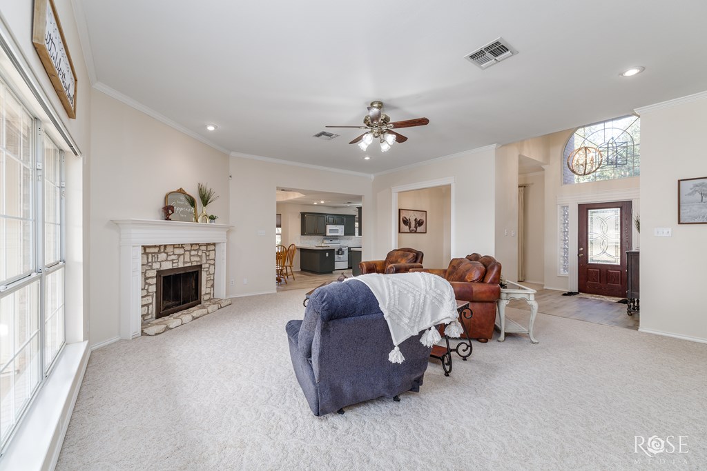 Discover this stunning home nestled in the established Southland neighborhood where classic charm meets modern elegance. The abundant natural light accentuates the high ceilings & neutral colors. The cozy fireplace in the spacious living room is perfect for relaxing and entertaining. The kitchen has been beautifully remodeled to blend style & functionality. The bedrooms feature generous closets offering comfort and convenience. Both bathrooms have had very nice updates including flooring, counter tops, sinks and fixtures. Step outside to a covered tiled patio overlooking the curbed landscaped flowerbeds & tall privacy fenced yard where you can have a true oasis for outdoor enjoyment. The property includes an extra long driveway, providing ample space for parking along with a convenient storage building. Come see this beautiful home for yourself - schedule a tour today!