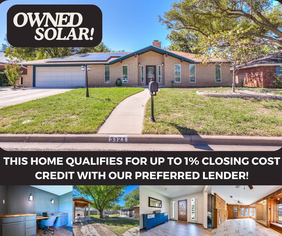 Up to 1% BUYER CREDIT*! Centrally located, with over 2,400 sq. ft of spacious living this 3 bed, 2 bath home is a perfect blend of comfort, style, & practicality. The heart of the home boasts a stately living area, complete w/ a cozy wood-burning fireplace and faux wood beams, ideal for creating warm memories. The versatile front room can easily serve as a second living area or a productive office while an inviting enclosed porch adds another flexible space, perfect for entertaining. This property showcases thoughtful updates, including newly renovated bathrooms, updated plumbing, plush carpet, luxury wood plank flooring, fresh paint throughout, along with stylish closet organizers that maximize storage. Enjoy high-speed fiber internet and owned energy-efficient solar panels, making this home both functional and environmentally friendly. The beautifully landscaped front and back yards, shaded by large trees, provide a serene outdoor escape. Don't miss the opportunity to make it yours!