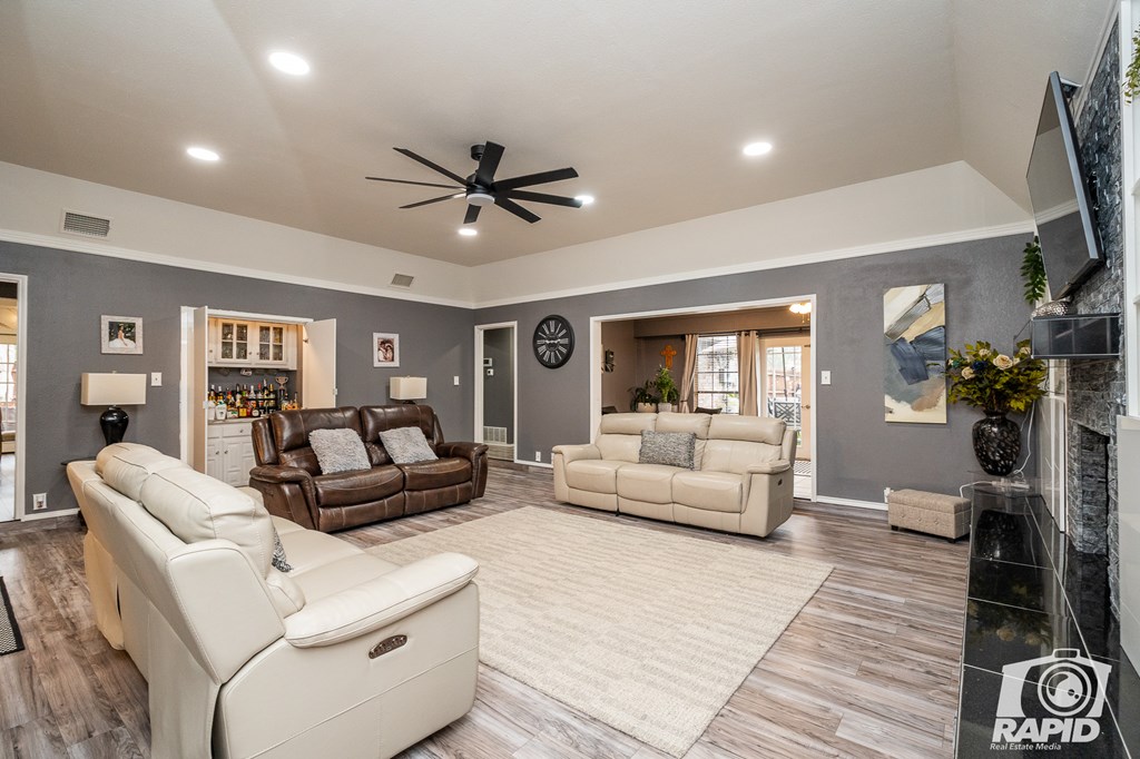 This beautifully remodeled 4-bedroom, 3.5-bathroom home offers nearly 3,000 sq. ft. of stylish living space. Situated on a desirable corner lot, this home boasts numerous updates, including fresh paint, new flooring, a new water heater, updated bathrooms, resurfaced kitchen cabinets, modern fixtures, a cozy fireplace and a brand-new stove in the desired Southland neighborhood. Designed for entertaining, the spacious living area features a wet bar, while an additional bonus room can serve as an office, den, or sunroom. Two spacious primary ensuites with private bathrooms is ideal for a mother -in-law setup or extended family stays. Step outside to your private backyard retreat, complete with a heated in-ground pool and a dedicated pool cabana equipped with a sink, cooktop, and bathroom perfect for guests. Meticulously maintained and charming, this home is a true standout in Southland. Don't miss your chance to make it yours.