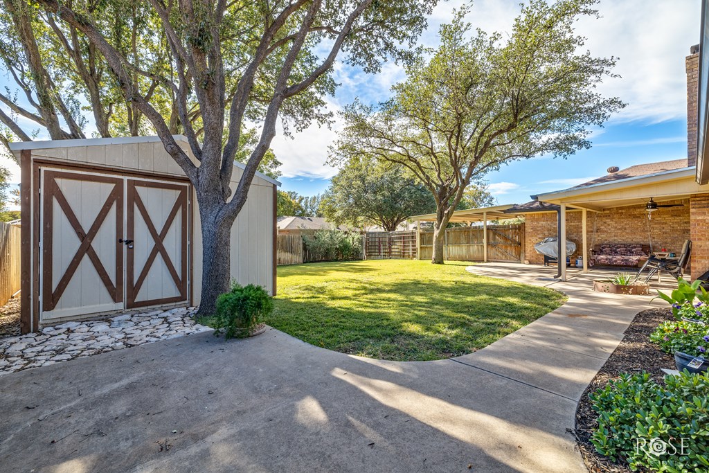 Welcome to your low-maintenance, Xeriscaped yard that has beautiful curb appeal. The backyard boasts a covered patio, lush lawn and a spacious workshop/shed with power. There is plenty of parking with the two car garage and covered carport, as well as an additional concrete slab. The home offers a split bedroom design, roomy living area with a wood burning fireplace and a large primary room with walk in closet. This clean, lovely home has been well-maintained. This Southland home is conveniently located near the Loop, shopping, restaurants and Lamar Elementary. Washer, dryer, refrigerator, patio swing and lawn maintenance supplies convey with full price offer. Call Shelly for a showing 801-860-1830. Sellers are offering $2,500 towards buyers' closing costs.