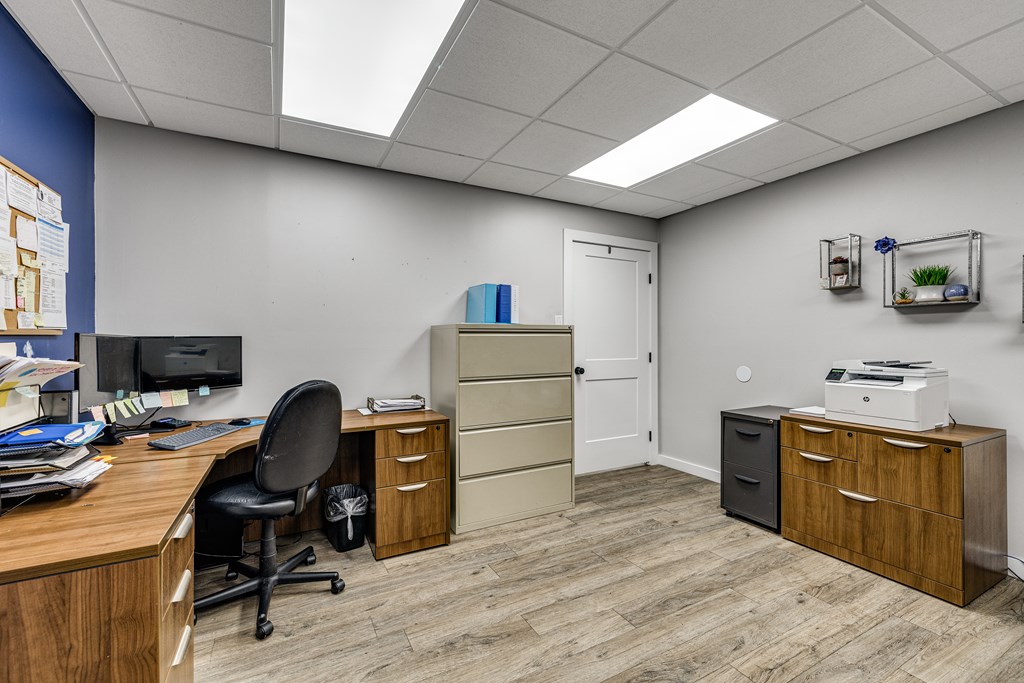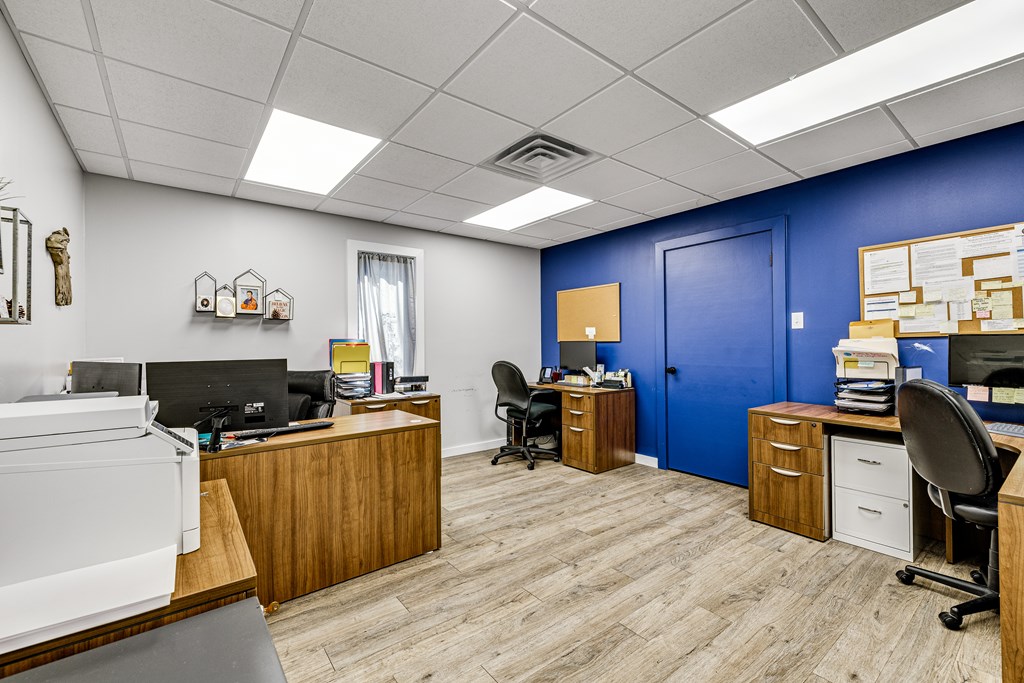 This is a 2 story office building with a great location, tons of space, and versatility. The downstairs has a private entrance, a reception area, 4 offices, a bathroom, a kitchenette, rear parking and access, a large storage closet and is metered separately. The upstairs with all new flooring and paint has an open concept entry/reception area, 4 large offices, 2 bathrooms, a kitchenette, rear parking/access, and is metered separately. The upstairs or downstairs could be leased while the other is owner occupied for additional income. The potential is endless in this building! The .348 acre lot that sits in front of the building is also for sale.