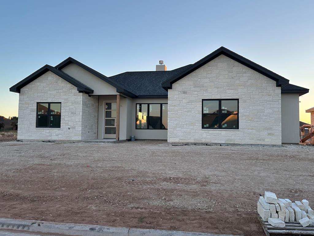 Welcome to your brand-new dream home. This modern yet cozy residence offers 2,000 square feet of thoughtfully designed living space, featuring 3 spacious bedrooms and 2 elegant bathrooms. Step inside to discover an open-concept kitchen that seamlessly flows into the living room and breakfast room, creating the perfect setting for entertaining. The kitchen boasts modern finishes, a hidden pantry, and ample space for culinary adventures. The home exudes a contemporary yet warm and inviting vibe, making it a perfect sanctuary for relaxation and gatherings. Both the front and back yards are beautifully landscaped and equipped with a sprinkler system. The covered back porch provides an ideal spot to unwind or host friends and family. Located close to a vibrant and growing area of San Angelo, you'll have easy access to ample shopping and dining options, making this home not just a place to live, but a lifestyle to enjoy. Don't miss the opportunity to make this stunning new build your own!
