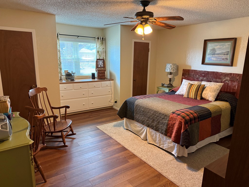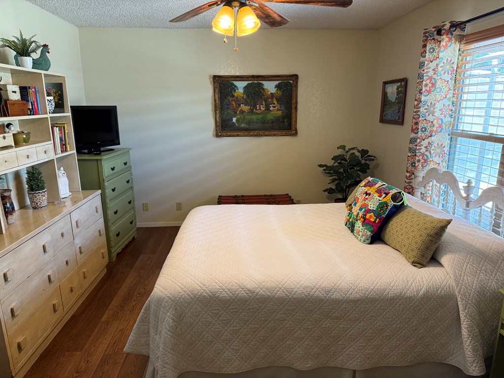 Welcome to your dream home! This beautifully updated three-bedroom, three-bath residence offers an abundance of space and comfort, perfect for modern living. Featuring two master suites, each with their own luxurious bathrooms equipped with step-in showers, this home is designed for ultimate relaxation. You'll be impressed by the large bedrooms, ensuring everyone has their own retreat. The expansive walk-in closet provides ample storage, making it easy to keep your wardrobe organized. Enjoy the added comfort of attic fans, which enhance airflow and coolness throughout the home. OH! This home also features triple Pane windows for added energy efficiency. Enjoy the peacefulness and tranquility in your covered back porch, well manicured yard, and the well constructed storage unit. Additionally, the roof was replaced in 2024, offering peace of mind for years to come. Don't miss out on this incredible opportunity to own a spacious and stylish home—schedule a viewing today!