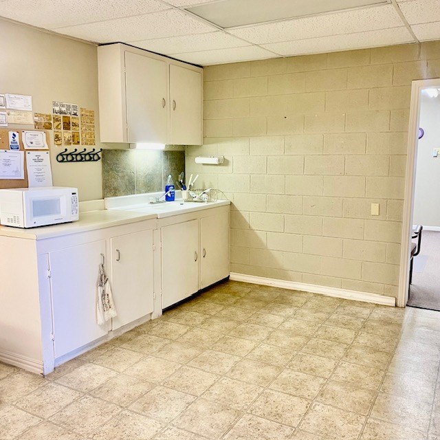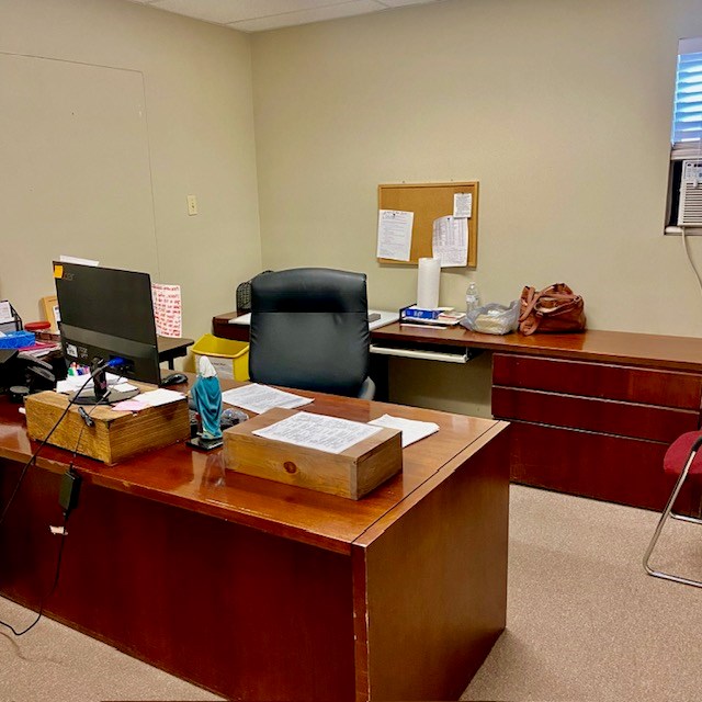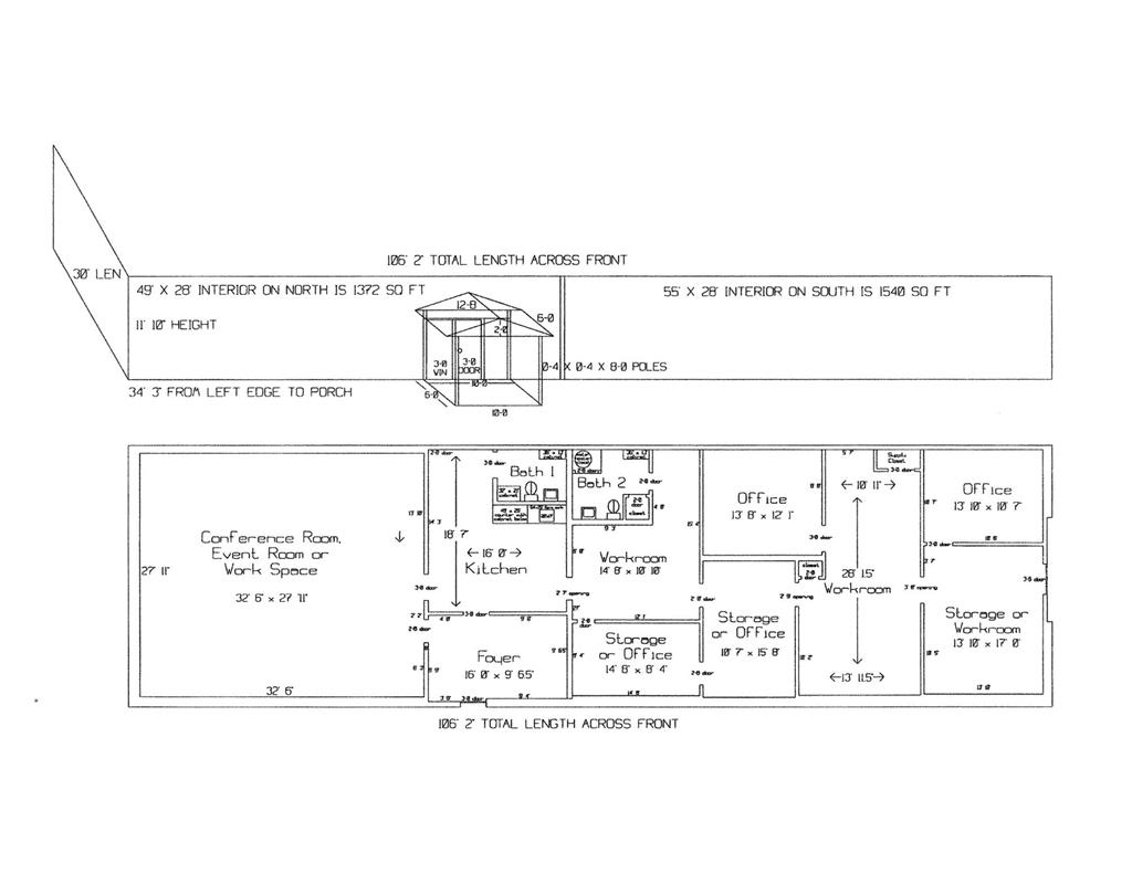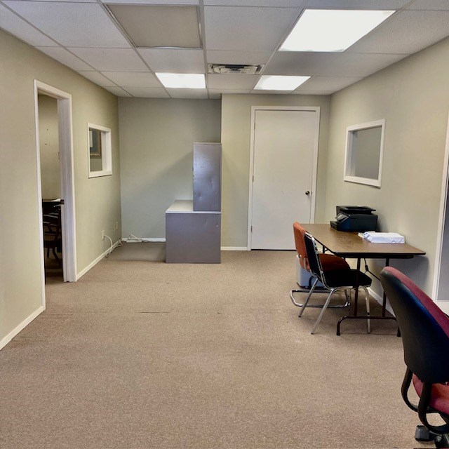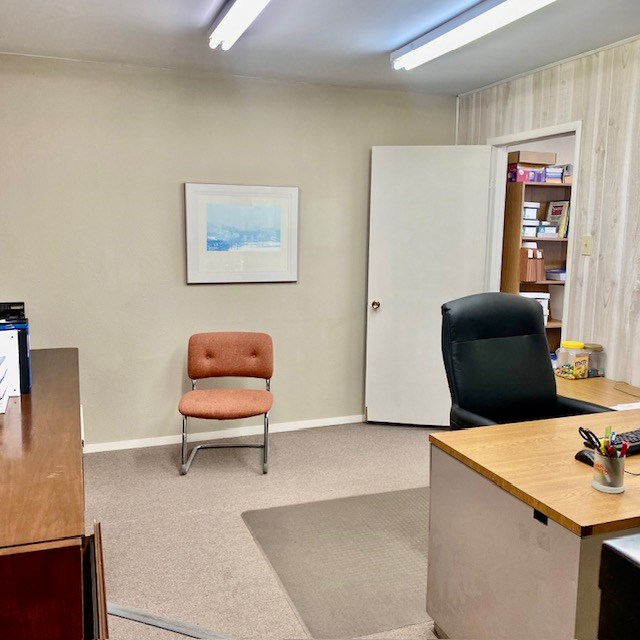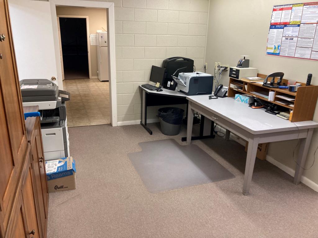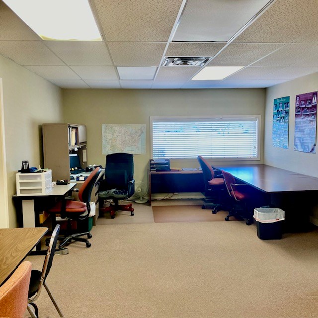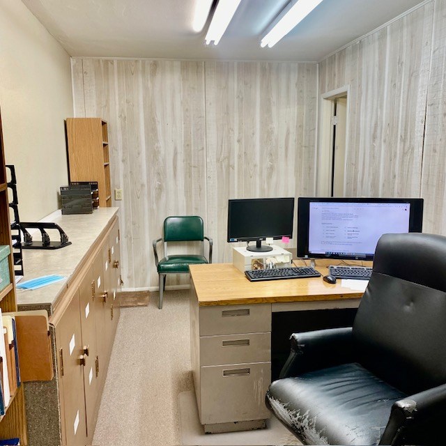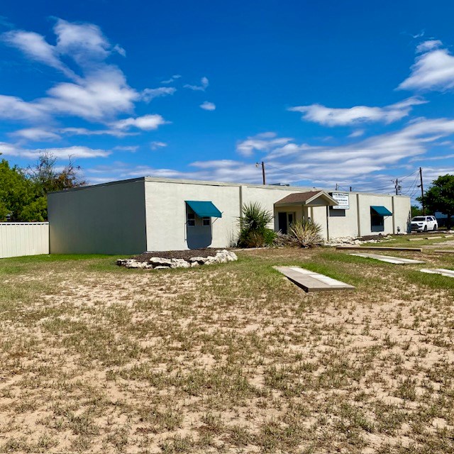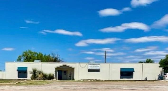 Large office on 3/4 of an acre in a high traffic area. Several offices, foyer, conference room, kitchen, storage area, 2 bathrooms and several multi-use areas. This is a very versatile space that could be used for office, retail, events, etc. Hail resistant TPO roofing replaced in April 2023, building exterior painted in April 2023. Large parking lot in front and gated, fenced yard with storage buildings. floor plan drawings attached in photos.