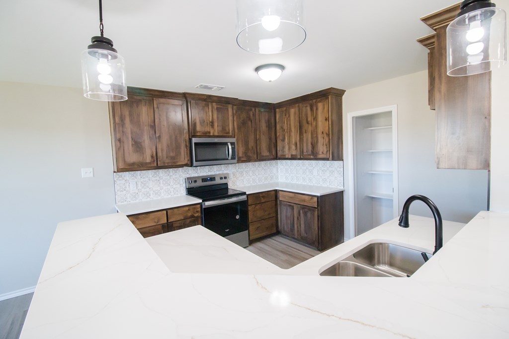 This new construction home is complete with an open concept kitchen and dining area, stone fireplace, quartz countertops throughout. Exterior is landscaped and includes sprinkler system. Builder is offering $5000 towards buyers credit.