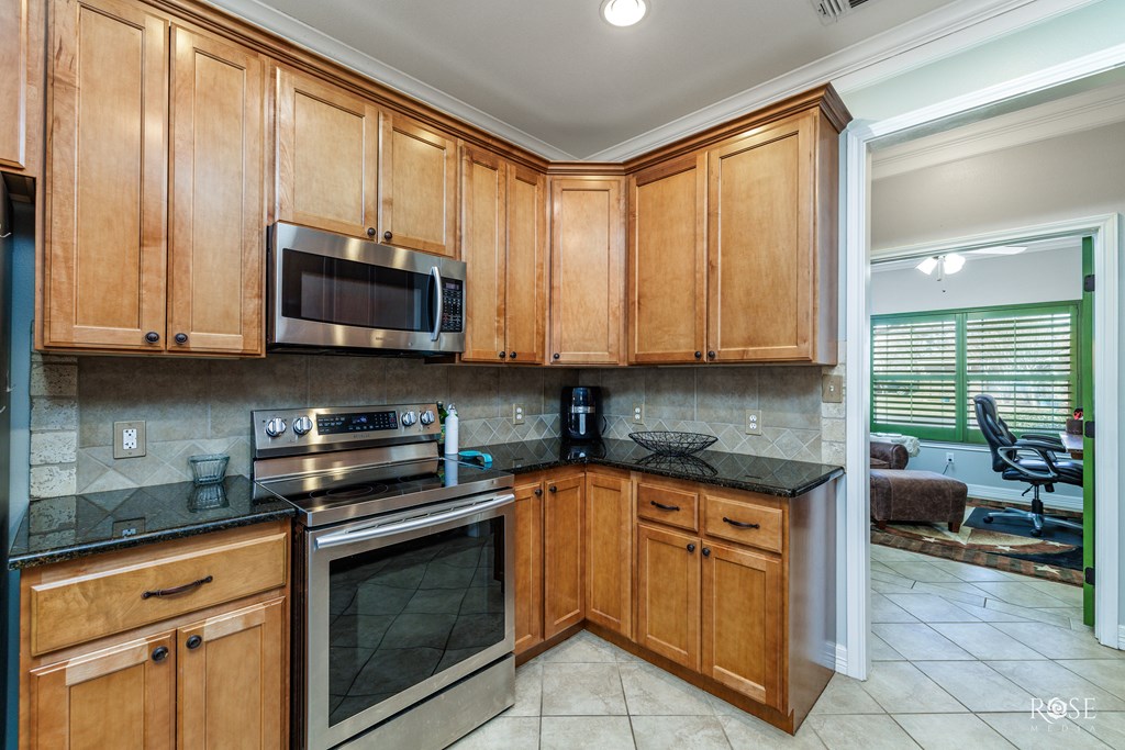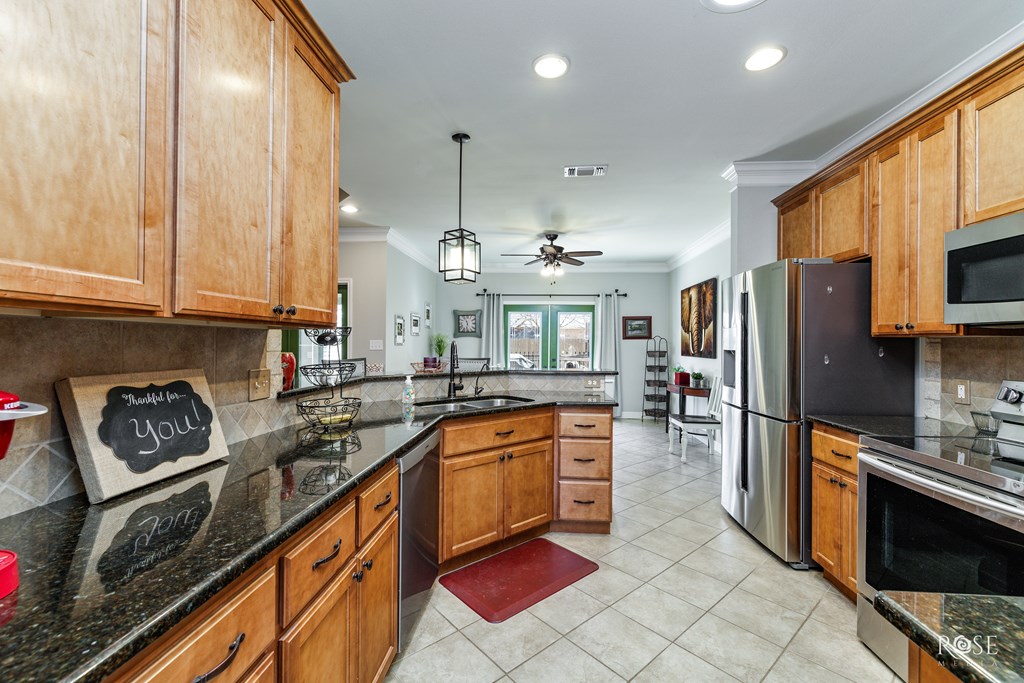 This modern, versatile home is practically perfect and ready for its next owner! Tucked away on a quiet street in the sought-after Trails subdivision, it offers quick access to Loop 306 and South Bryant Boulevard for an easy commute. The curb appeal shines with a xeriscaped front yard filled with drought-tolerant plants, while the backyard is a true retreat—featuring a spacious patio, mature trees, a charming rose garden, and a rainwater collection system. Inside, the home feels like it belongs on a magazine cover, showcasing soothing color palettes, sleek hard-surface floors, granite countertops, a dedicated office, generous closet space, and an oversized pantry that's perfect for a hungry household. Don't wait—call your favorite agent today and make it yours!