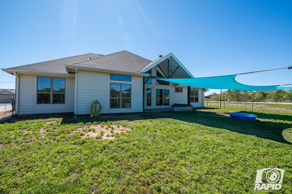 Like-new but better! This 3-year-old home on 1.4 Acres has been upgraded with features you won't find in most homes nearby. Added gutters, custom built-in bookshelves, and 12 inches of extra attic insulation help with comfort and efficiency—preventing water pipes from freezing in winter. The extended concrete driveway leads to a large covered structure—perfect for RVs, campers, or extra vehicle protection from hail. Sitting on a spacious lot with a gravel access road, it's ideal for adding a future shop. Inside, enjoy upgraded light fixtures and glass shower doors. Outside, the landscaping is accented with hand-selected native rock from the property itself. This great home was previously under contract, however fell through due to buyer financing. Let their loss be your gain. Inspection report available for your review.