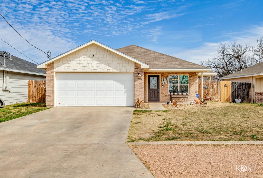 Hey there, future homeowner! Ever dream of a place that feels like home the moment you walk in? Well, 4722 Oaklawn Blvd is calling your name! This isn't just a house, it's a 3 bed, 2 bath, 1180 sq ft slice of awesome, built in 2020. Think open concept living, perfect for game nights & making memories. The kitchen? Prepare to be wowed! Stunning stained cabinets and trim, gleaming granite countertops, & a great pantry. Luxury vinyl flooring flows throughout, adding a touch of elegance. Out back, a huge yard with double gate entry awaits your imagination – think backyard BBQs and maybe even a pool? Relax on the covered patio while the sun sets. At 4722 Oaklawn Blvd, every detail has been crafted with care, creating a space that's not just a house, but a place you'll be proud to call home. Check out the video tour on YouTube by searching 4722 Oaklawn, San Angelo, TX.