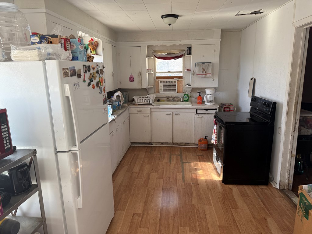 Spacious 4 Bedroom 1 Bath home situated on .694 acre lot.. One water well provides water for home. one additional well needs pump. Located close to Goliad Elementary.. Property being Sold (AS IS). Roof is 3 years old..per owner..