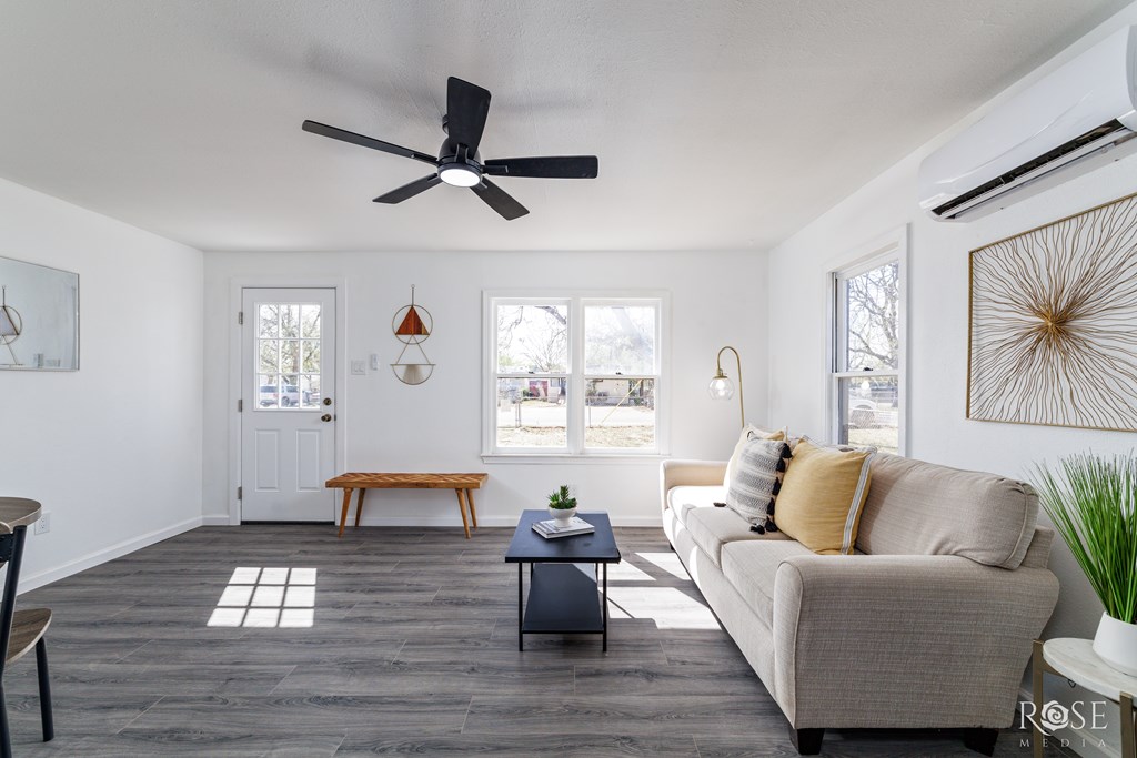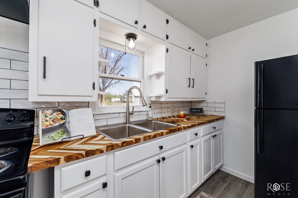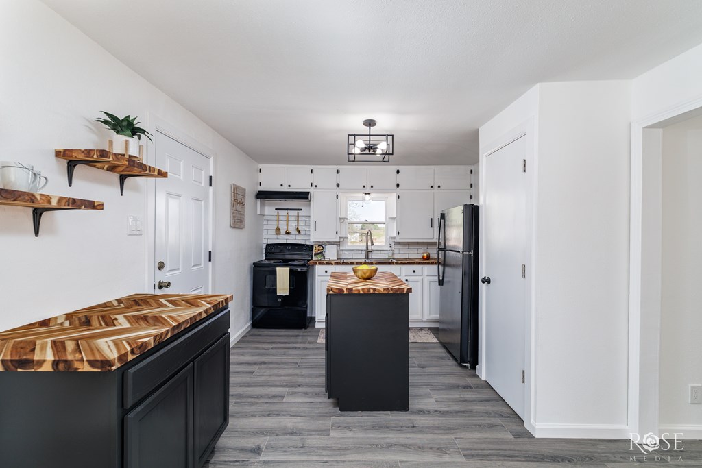 Welcome to this beautiful remodeled 2-bed, 1-bath home nestled on 1.7 acres of land. The interior boasts brand-new flooring, fresh paint, and updated light fixtures throughout. The kitchen has been thoughtfully upgraded with butcher block countertops, cabinetry, an island, a dedicated coffee bar, and stylish floating shelves. The completely renovated bathroom features a new vanity, mirror, toilet, tiling and bathtub, offering a fresh, modern look. Additional updates include new mini-split systems and water heaters, ensuring year-round comfort. Outside, the home has been fully painted, and a new roof has been installed, providing peace of mind for years to come. The property also includes a workshop with electricity and running water, perfect for hobbies or storage, and it even features a second bathroom and washer/dryer hookups. With on-site septic and well water, this home offers the perfect balance of modern amenities and a quiet setting.