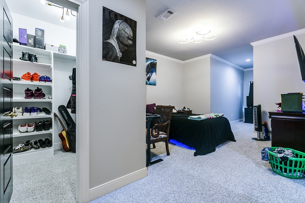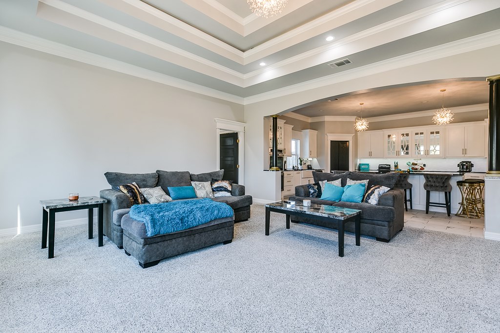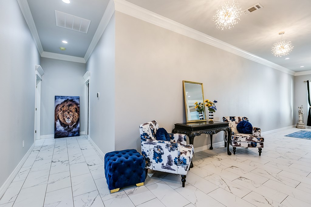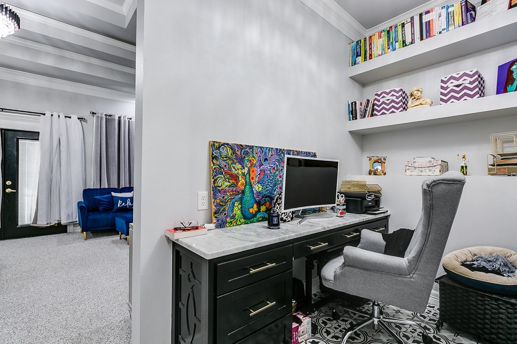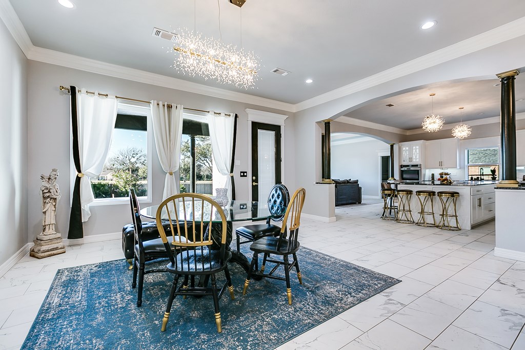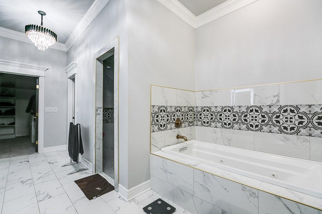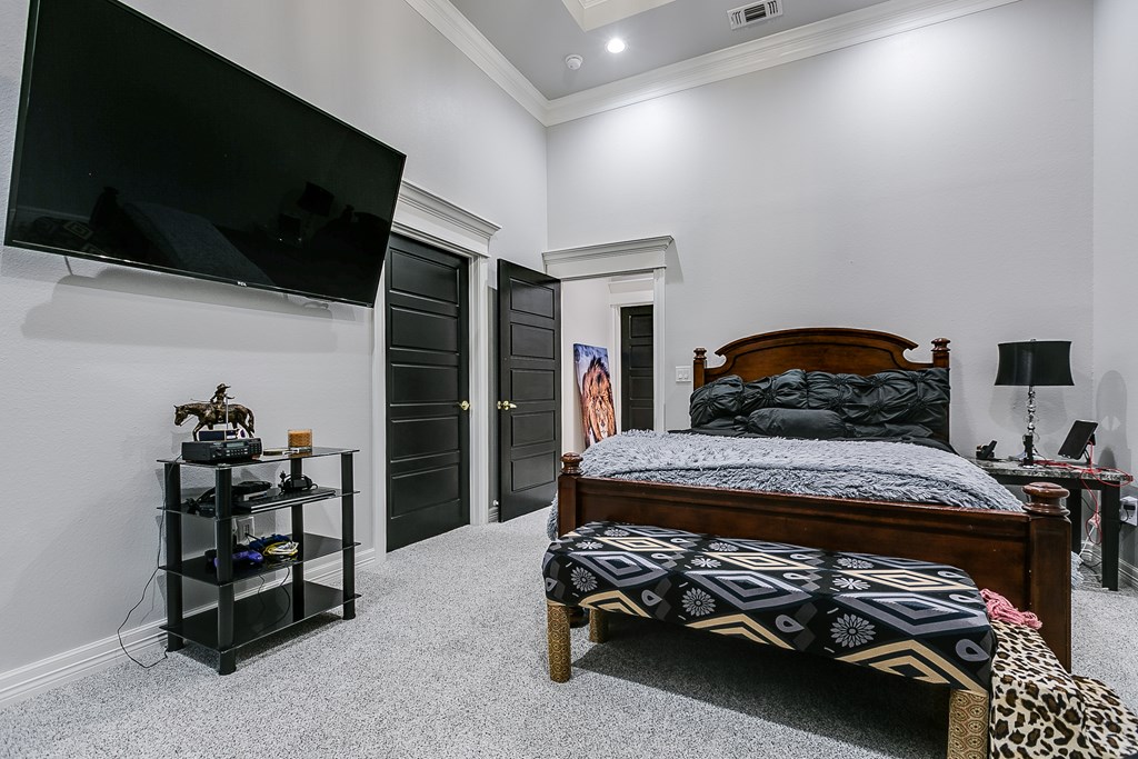 Nestled on the golf course of Bentwood Country Club Estates, this exquisite residence spans 4704 square feet and offers unparalleled luxury. Boasting 5 bedrooms and 4 full baths, the home is designed for both comfort and entertainment and features a spacious game room and a dedicated workout area, complemented by a state-of-the-art movie/theater room. The expansive kitchen centers around a massive island, perfect for culinary enthusiasts and gatherings alike. Relaxation awaits in the primary bedroom, complete with a cozy fireplace. Ample storage is provided with generously sized closets throughout, a surround sound system wired throughout the entire home, and a dedicated water purification system underscores the commitment to quality living. Backyard oasis beckons with a heated pool and inviting hot tub, surrounded by an outdoor kitchen and wired for surround sound. This remarkable property offers a lifestyle of luxury and comfort, meticulously designed with countless amenities.