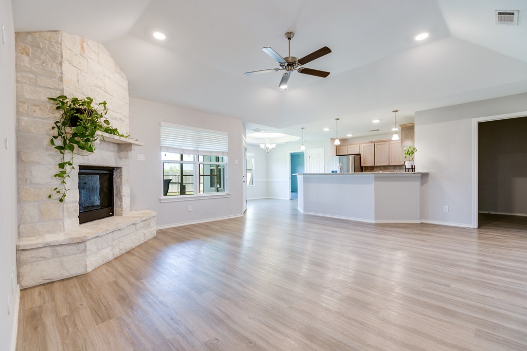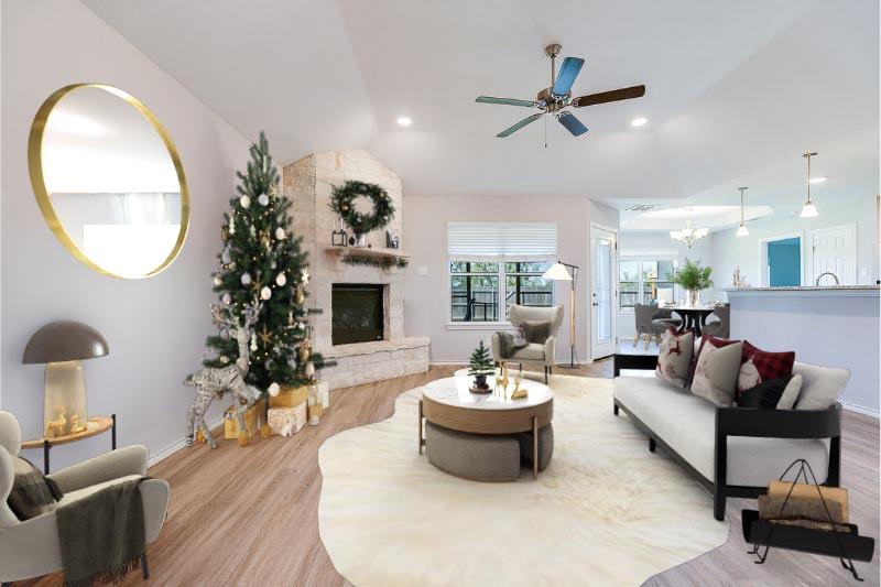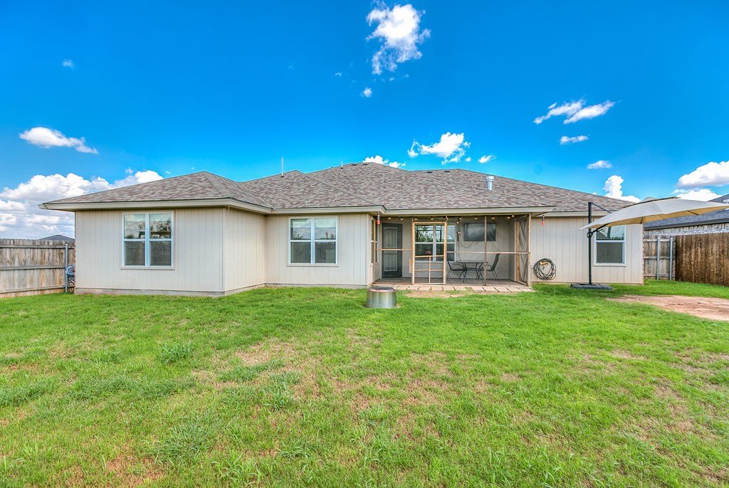 Just in time for the Holidays and a 4.375% Assumable VA rate*. Tucked away in a serene cul-de-sac in the highly sought-after Bonham school district is this picturesque 4 bedroom, 2 bath home. The inviting foyer & spacious living room boasts tall ceilings, stone gas fireplace, plenty of natural light atoned with gorgeous wood laminate flooring, and opens to a well-designed kitchen and dining area. The kitchen offers plenty of cabinet space, granite countertops, pantry and stainless steel appliances. The split floor plan offers a private primary ensuite with brand new carpet, a spacious bathroom featuring separate soaking tub and shower, double vanities, custom walk-in closet with amazing built-ins and chandelier lighting. Landscaped yards provide a serene oasis and thecharming screened in back patio is the perfect place to indulge in your morning coffee watching kiddos play in the lush grass of the fenced Texas sized yard that backs up to a wooded area for extra privacy. Photos staged*