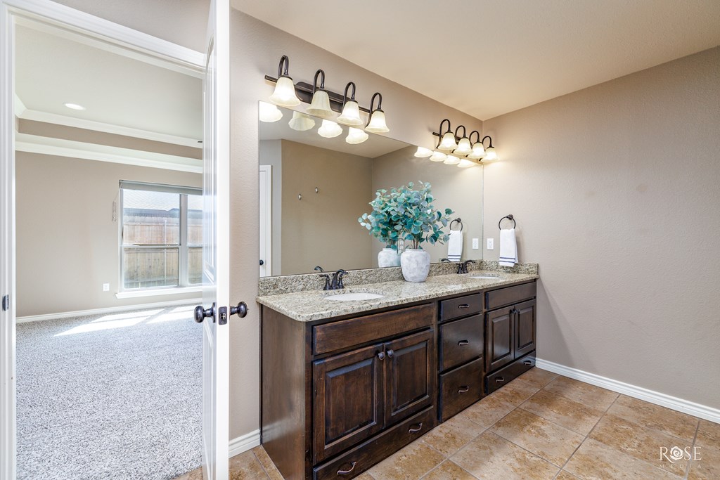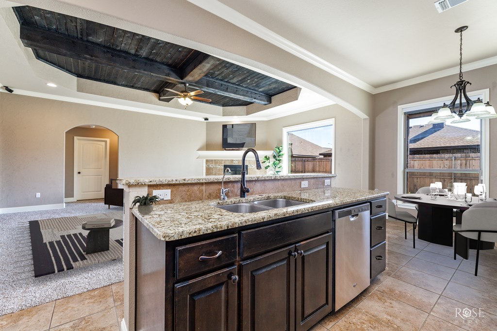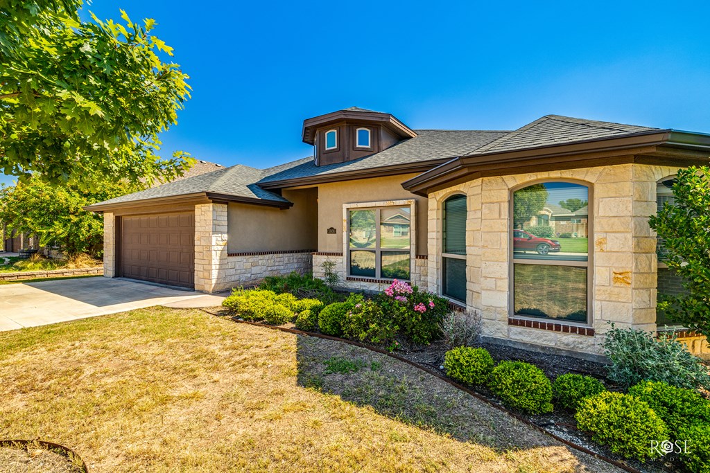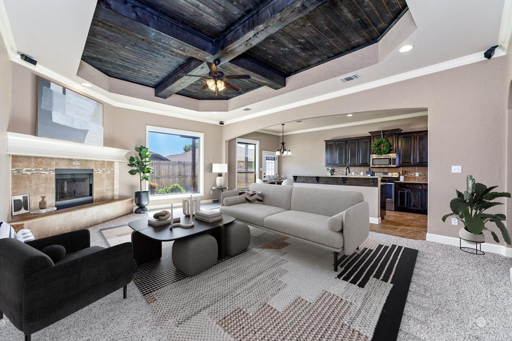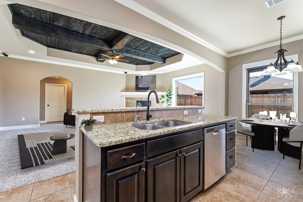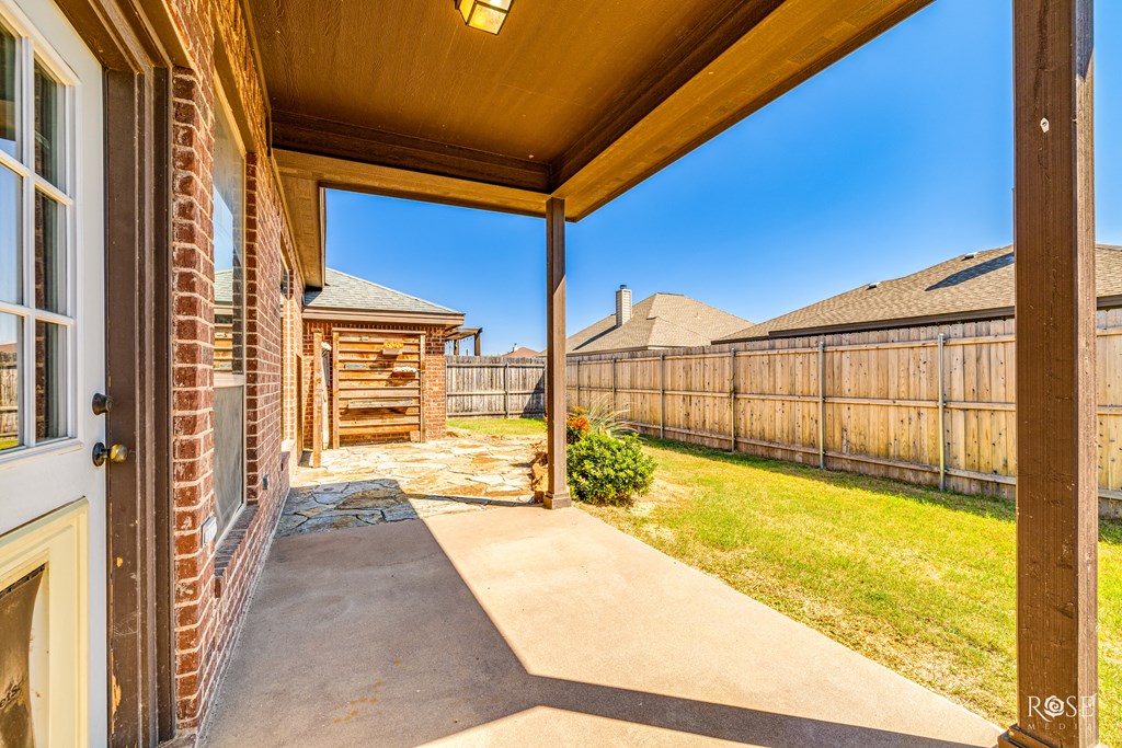 Designed for comfortable living, this beautiful home spoils with its stunning attention to detail. The open floor-plan home could be described as sun-sational with its natural light filled rooms. Kitchen has stainless appliances, abundant granite counter space, large island breakfast bar, and french-door pantry. High-end custom window treatments and brand new carpet add to the elegance of this great home. The comfortable living space is open to kitchen and dining, and features a beautiful wood beam ceiling treatment along with a large picture window looking into the backyard. The oversized bedrooms offer a combination of luxury and comfort living which you deserve. The 8' privacy fence adds that extra touch of seclusion for enjoying your backyard and the extended custom rock patio. All of this and more, within walking distance to the neighborhood elementary school.