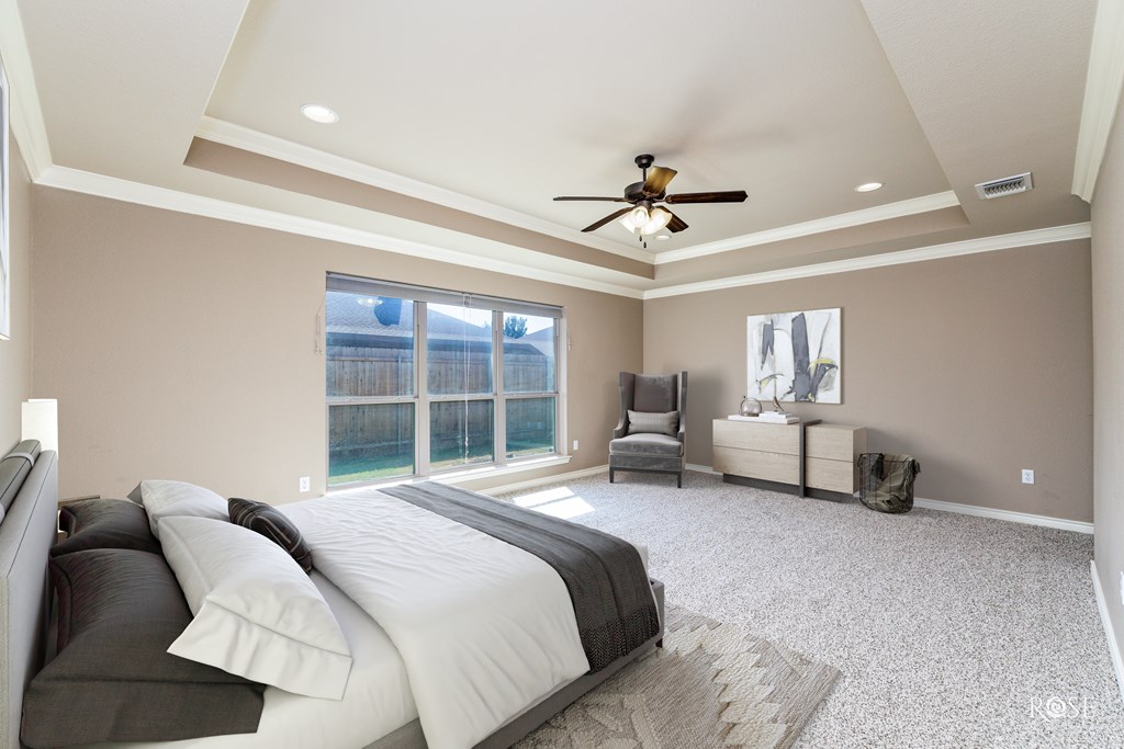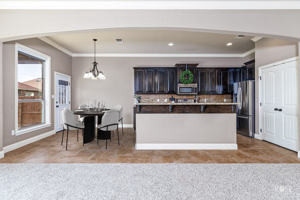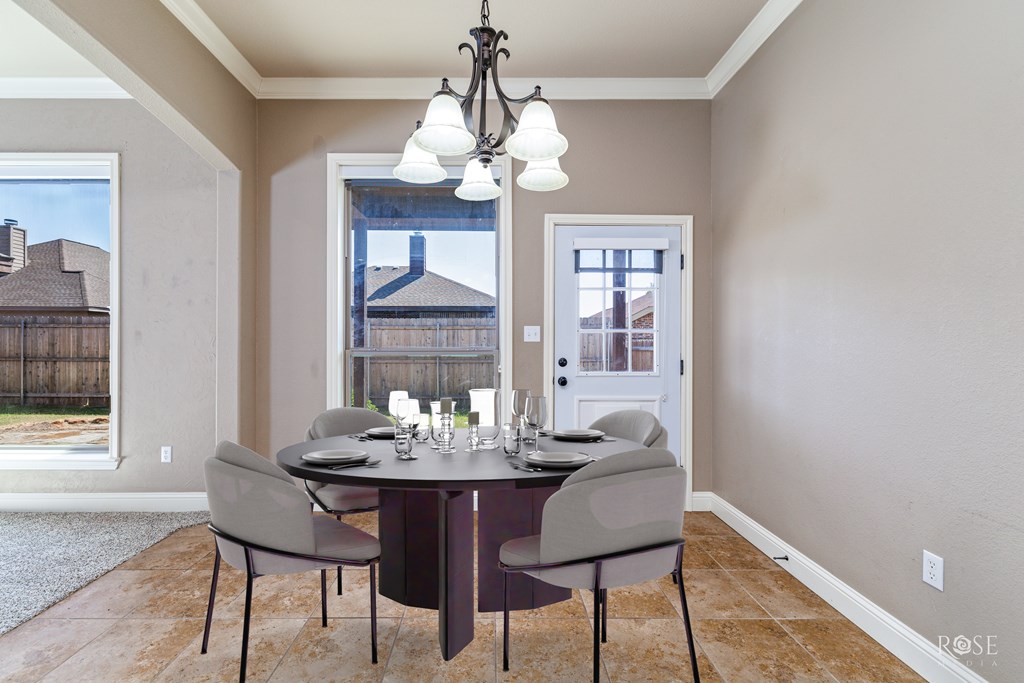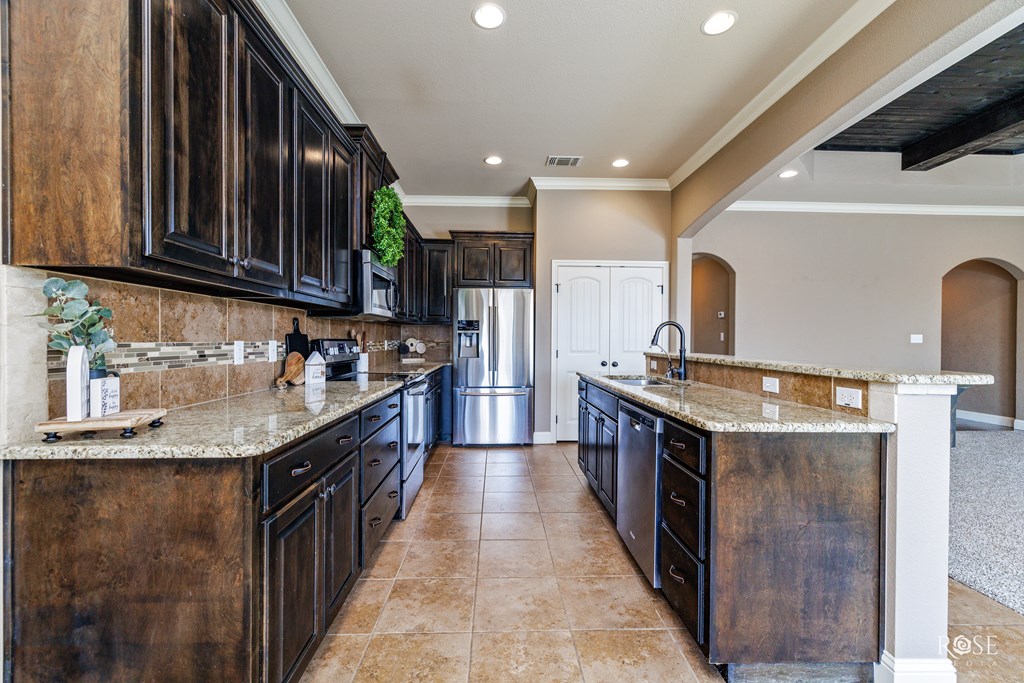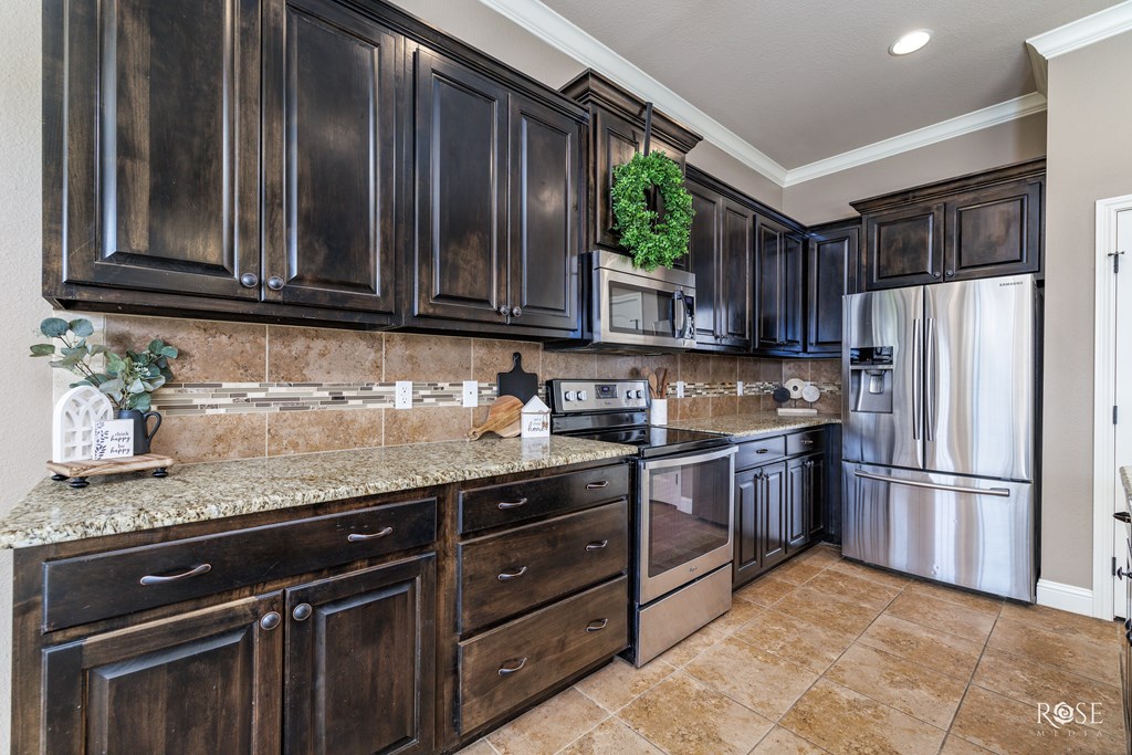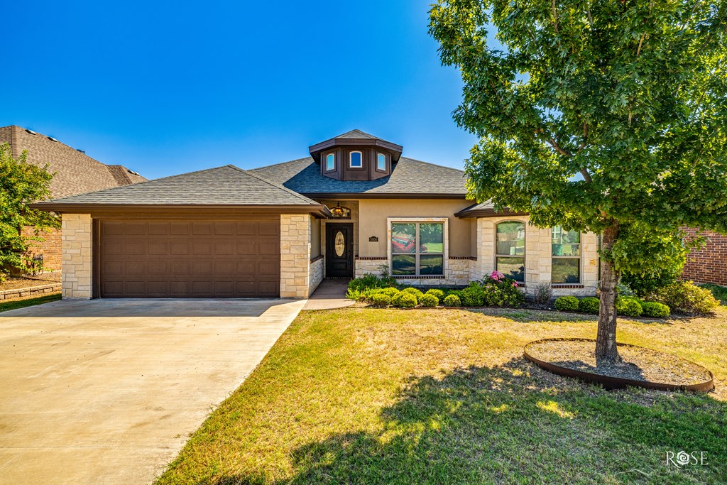 Designed for comfortable living, this beautiful home spoils with its stunning attention to detail. The open floor-plan home could be described as sun-sational with its natural light filled rooms. Kitchen has stainless appliances, abundant granite counter space, large island breakfast bar, and french-door pantry. High-end custom window treatments and brand new carpet add to the elegance of this great home. The comfortable living space is open to kitchen and dining, and features a beautiful wood beam ceiling treatment along with a large picture window looking into the backyard. The oversized bedrooms offer a combination of luxury and comfort living which you deserve. The 8' privacy fence adds that extra touch of seclusion for enjoying your backyard and the extended custom rock patio. All of this and more, within walking distance to the neighborhood elementary school.