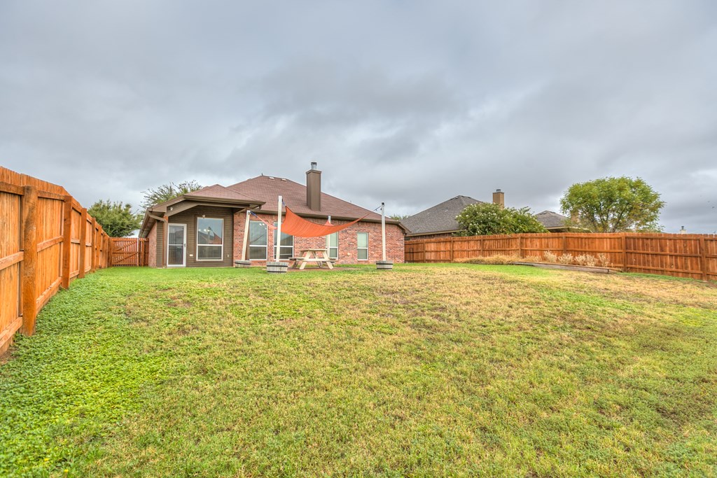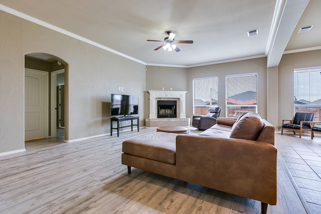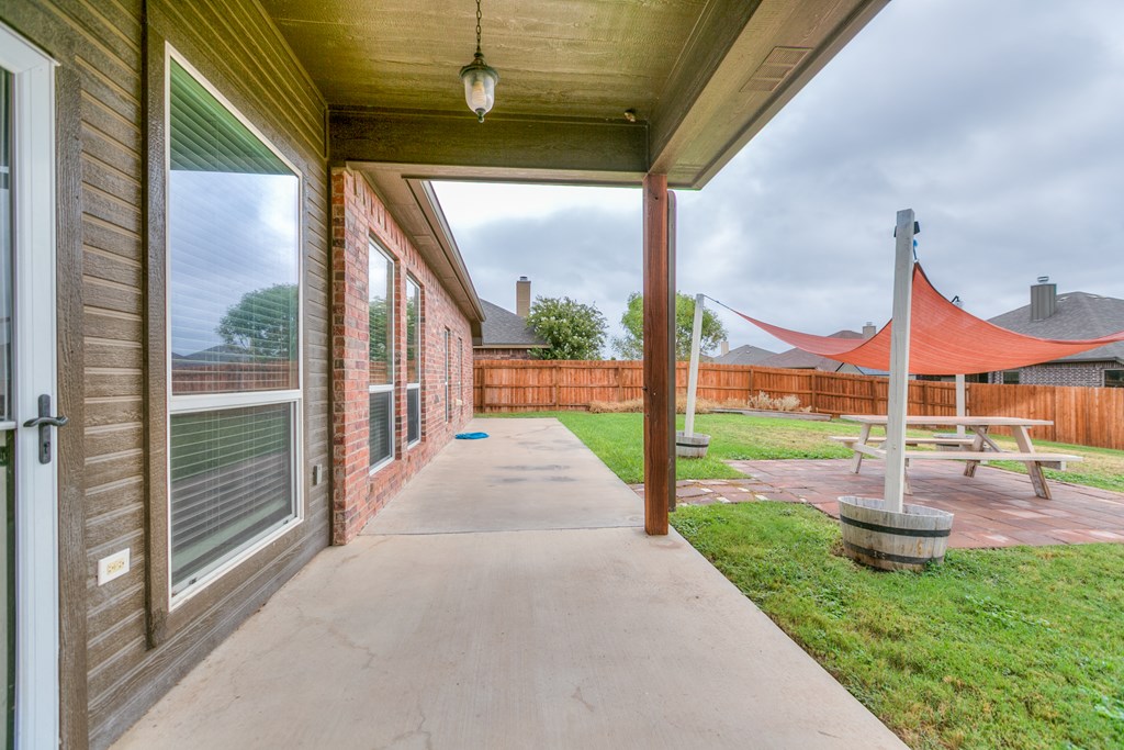 This stunning 3-bedroom, 2-bathroom home offers an inviting open floor plan with high ceilings and elegant arches that enhance its architectural charm. Enjoy the modern touch of gorgeous vinyl flooring throughout—no carpet in sight! The kitchen is a chef's dream, featuring custom raised-panel cabinets, sleek granite countertops, and stainless steel appliances. The west-facing orientation ensures lovely afternoon shade in the spacious backyard, where you can relax under the covered patio that extends into the yard. Plus, the garage stands out with its uniquely scored and stained floor. Don't miss the chance to make this beautiful home your family's new haven!