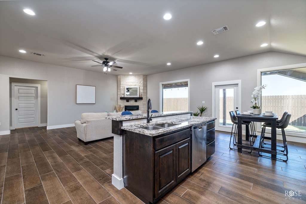 Welcome to this gorgeous 3-bedroom, 2-bathroom home nestled in the desirable Southland area. Step into a spacious living room with soaring ceilings and a beautiful brick, wood-burning fireplace, perfect for cozy nights. The kitchen is a chef's dream, offering plenty of cabinet and countertop space, highlighted by stunning granite countertops. The primary bedroom is impressively large, providing a serene retreat, while the modern, updated bathrooms are sure to impress. Throughout the home, natural light streams in, showcasing the gorgeous wood plank porcelain tile, with plush carpeting in the bedrooms for added comfort. The backyard is a private oasis with a pergola-covered patio area, enclosed by a large, tall privacy fence, making it perfect for outdoor relaxation or entertaining. This home truly offers a warm, welcoming atmosphere and all the modern touches you desire!