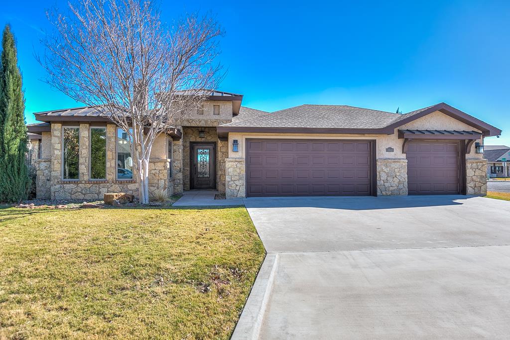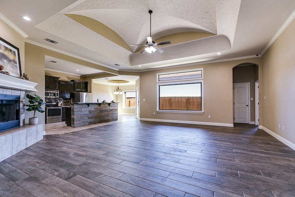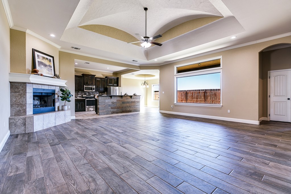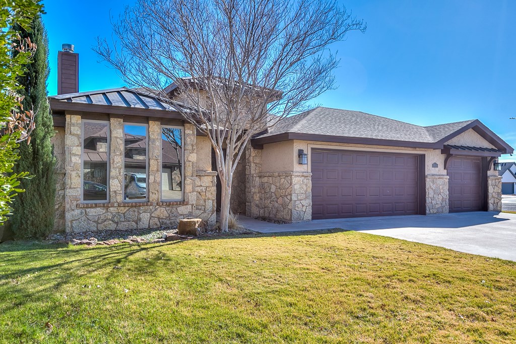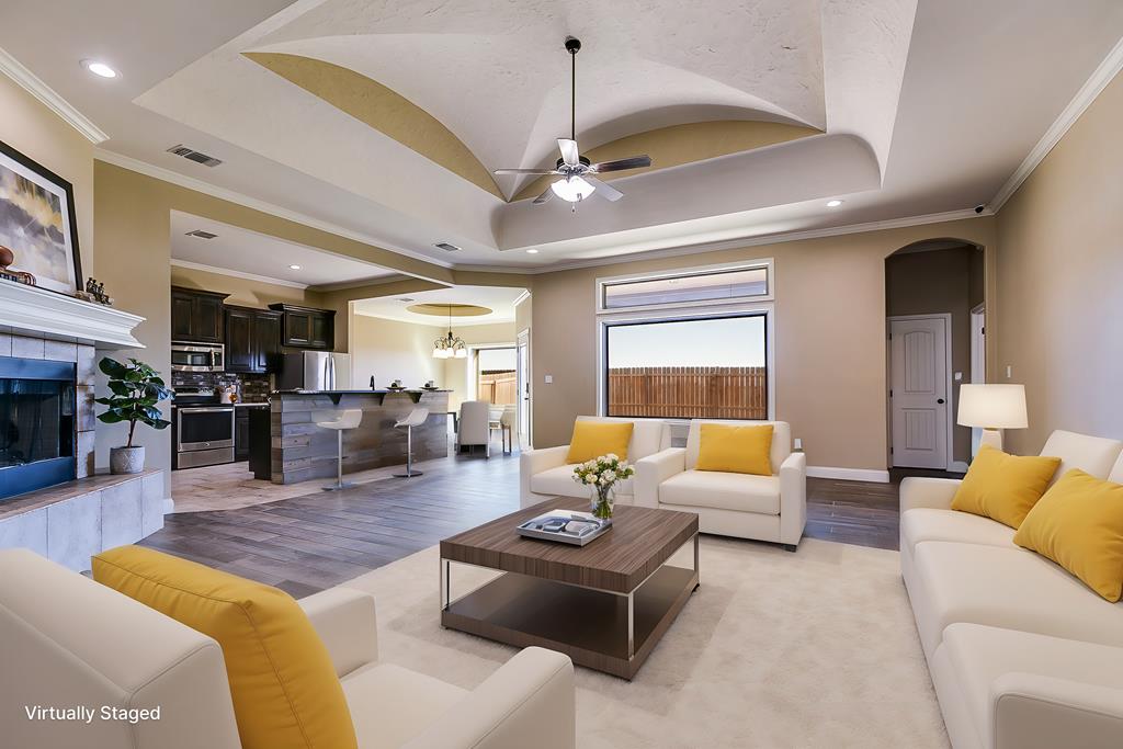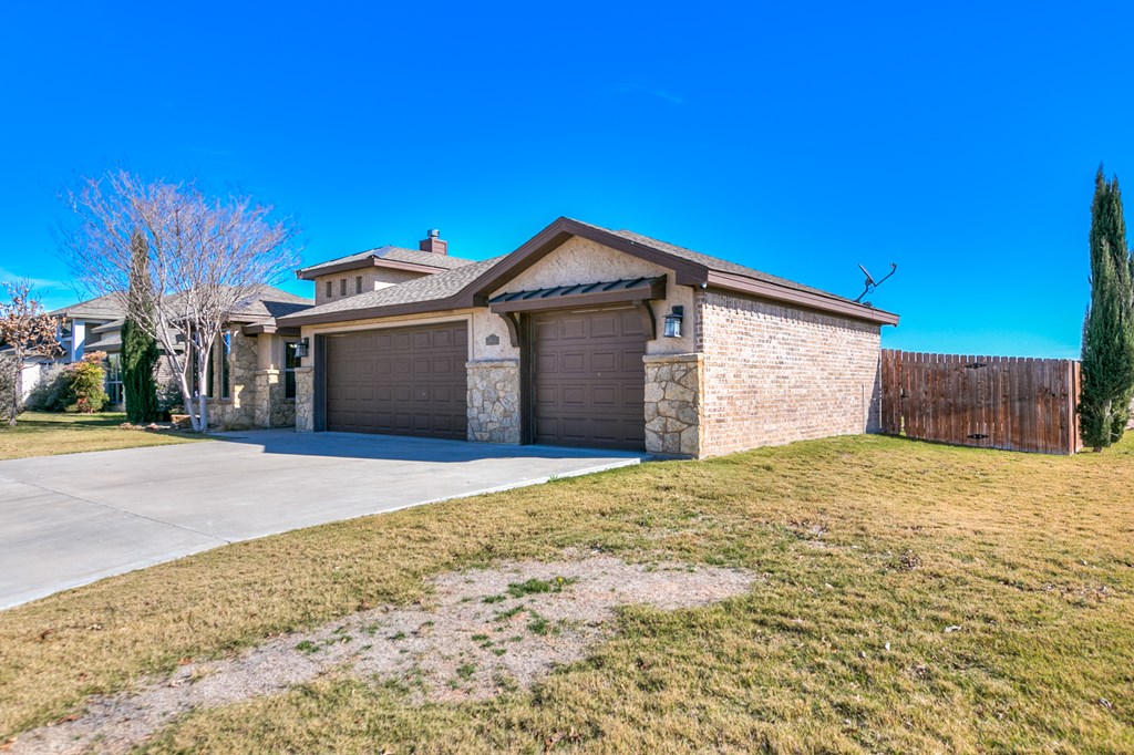 Discover this delightful 3-bedroom, 2-bathroom home nestled in the serene Trinity West addition. Perfectly situated on a spacious corner lot, this property is just a short stroll from Lamar Elementary School, making it ideal for families. Step inside to find wood-look tile flooring throughout, high ceilings with exquisite details, and a cozy corner fireplace that anchors the open-plan living area—a perfect space for entertaining or simply enjoying family time. Large windows flood the home with natural light, creating a warm and inviting atmosphere. The main bedroom is a true retreat, featuring an en suite with a separate tub and shower, offering both functionality and a touch of luxury. Outside, the covered patio invites you to relax and take in the backyard. For those with hobbies or a need for extra workspace, the partially heated and cooled garage is a standout feature, offering versatility year-round. This home blends style, comfort, and convenience, making it a must-see.