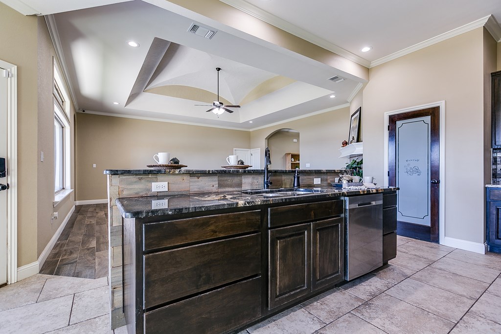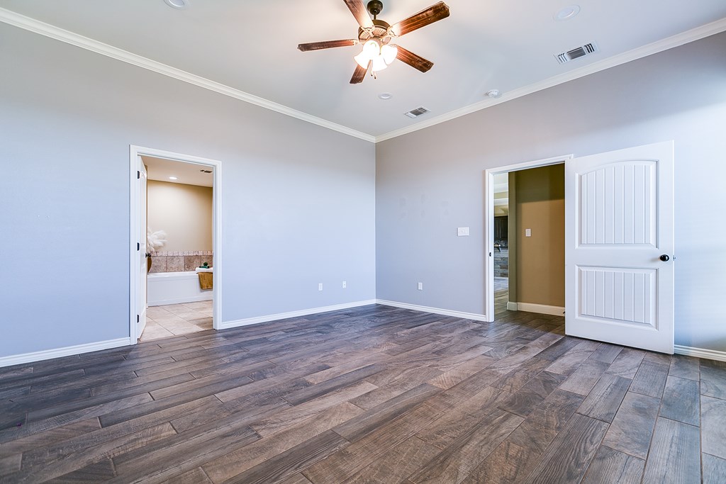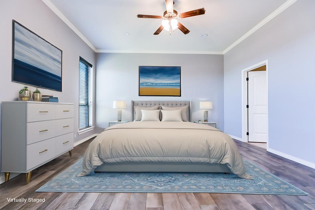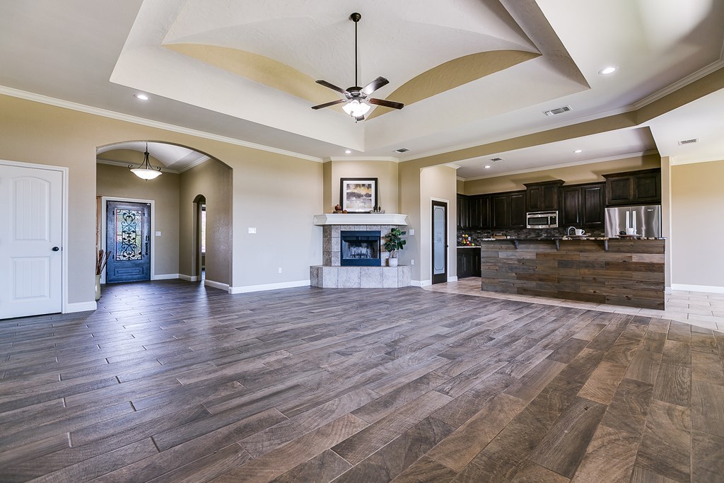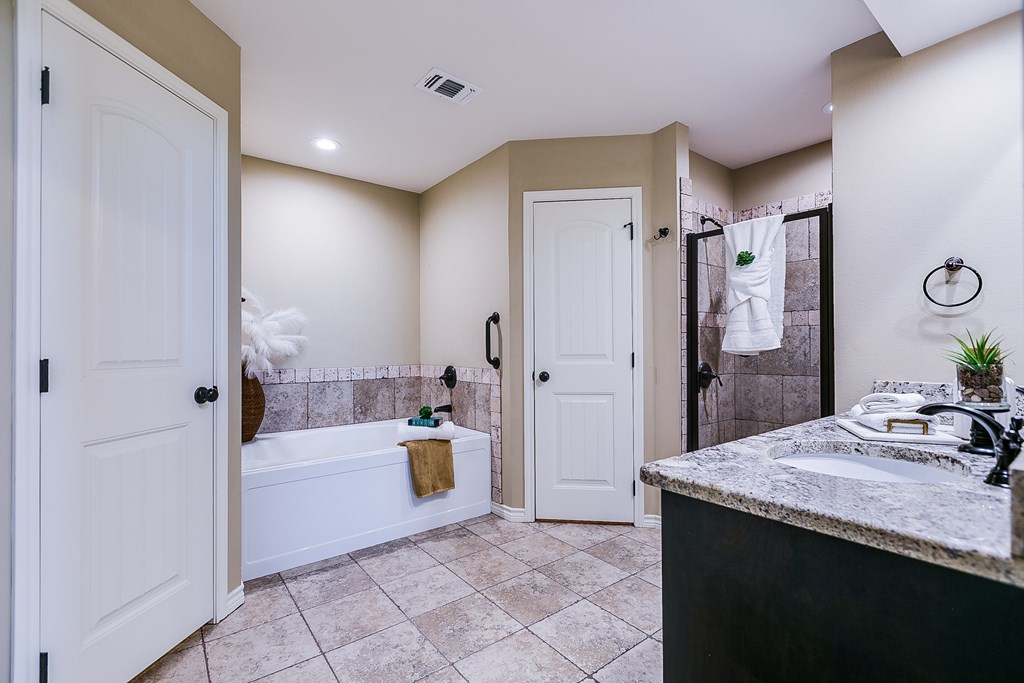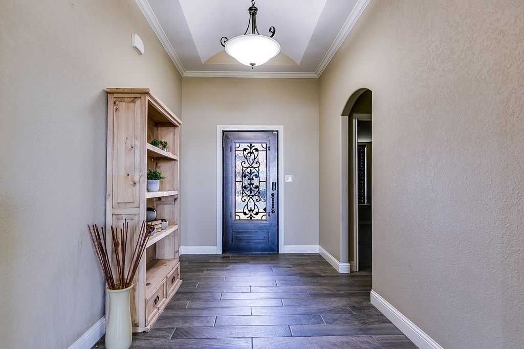 Discover this delightful 3-bedroom, 2-bathroom home nestled in the serene Trinity West addition. Perfectly situated on a spacious corner lot, this property is just a short stroll from Lamar Elementary School, making it ideal for families. Step inside to find wood-look tile flooring throughout, high ceilings with exquisite details, and a cozy corner fireplace that anchors the open-plan living area—a perfect space for entertaining or simply enjoying family time. Large windows flood the home with natural light, creating a warm and inviting atmosphere. The main bedroom is a true retreat, featuring an en suite with a separate tub and shower, offering both functionality and a touch of luxury. Outside, the covered patio invites you to relax and take in the backyard. For those with hobbies or a need for extra workspace, the partially heated and cooled garage is a standout feature, offering versatility year-round. This home blends style, comfort, and convenience, making it a must-see.
