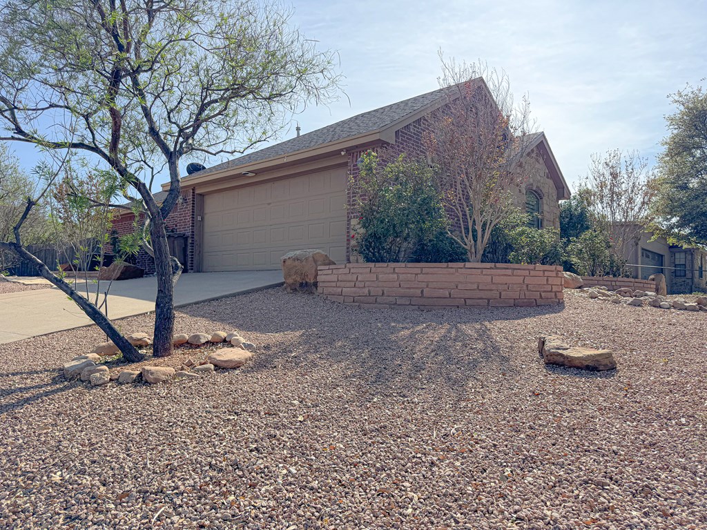 Nestled in the picturesque Bluffs neighborhood, this stunning brick home sits on a desirable corner lot, offering both curb appeal and privacy. Boasting classic charm with modern updates, this home features 3 bedrooms, 2 bathrooms, a spacious layout, and abundant natural light throughout. Step inside to find a warm and inviting living space with laminate floors, a cozy fireplace and your own personal office. The kitchen is beautifully appointed with granite countertops, stainless steel appliances and custom cabinetry-perfect for both everyday meals and entertaining. Outside, the zeroscaped front yard exudes maintenance free beauty. While the well-manicured backyard and covered patio provide the perfect setting for relaxation or gatherings. This home offers a serene retreat while being just minutes from shopping, dining, and many other amenities. Don't miss this rare opportunity to own a timeless home in The Bluffs!