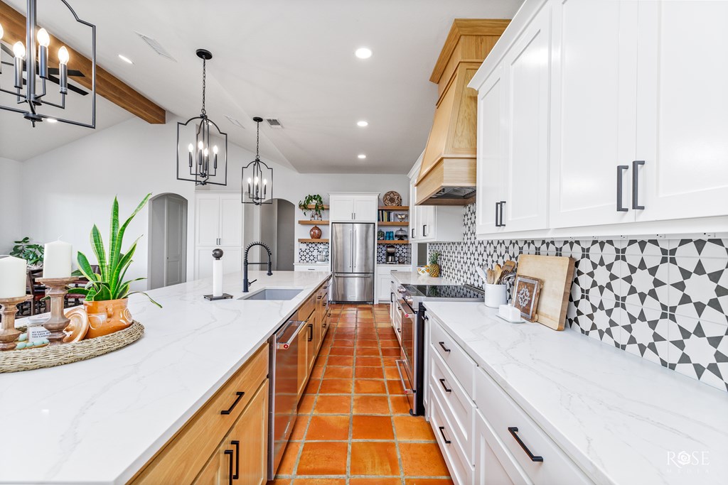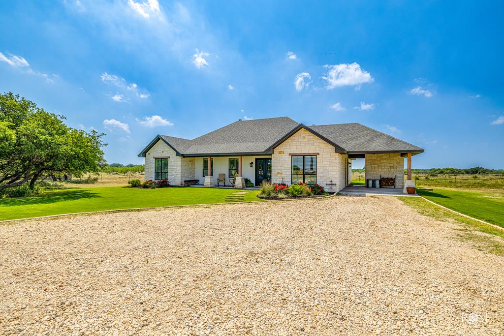This custom Austin Stone home sits on +/-150 acres in Schleicher County. Built in 2022, the home features Saltillo tile throughout with carpeting in 2 bedrooms, wood burning fireplace, flex room off the primary bedroom (perfect for a nursery, den, office, etc.), quartz countertops, custom cabinetry, cathedral ceiling in the open living, dining and kitchen areas along with a covered front porch and rear patio. The landscaped and irrigated yard features a stone retaining wall and firepit. The recently built metal barn is perfect for 4-H or FFA projects with a wash rack, 2 storage rooms and 3 small traps behind the barn, each with sheds and water troughs. The acreage is easy to get around with a nice mixture of mature oak trees and mesquite and other cover for wildlife. The property is located approximately 16 miles southeast of Christoval. Additional acreage is available.