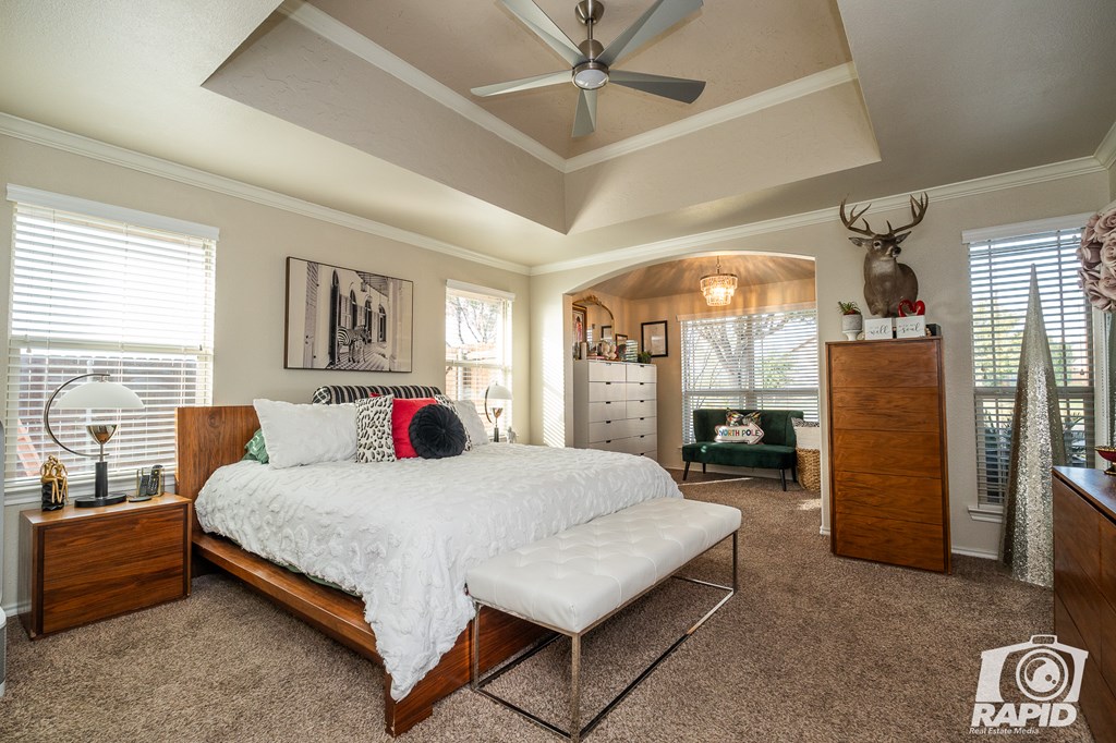 Absolutely stunning describes this 4 bedroom 2 bath home. You will appreciate the attention to detail throughout. As you enter you are welcomed with a large open-concept floor plan, featuring tall ceilings, beautiful fireplace, large windows and great view of the backyard with inviting covered patio. Just a few of the details you deserve, are the stylish hardwood floors, the abundant upper-end cabinetry in the kitchen, beautiful granite counters, stainless steel appliances, a rock and granite island, extra parking, and floor plan that flows. In the master suite, there is an additional 11x7 area, along with the ensuite offering a soaker tub and separate shower, H/H sinks and more. While all secondary bedrooms are a great size also. The backyard is ready to enjoy with its privacy fence and back porch with beautiful wood trim ceiling and tile flooring. New Roof Oct. 2024. Don't miss the side yard, perfect for a dog run.